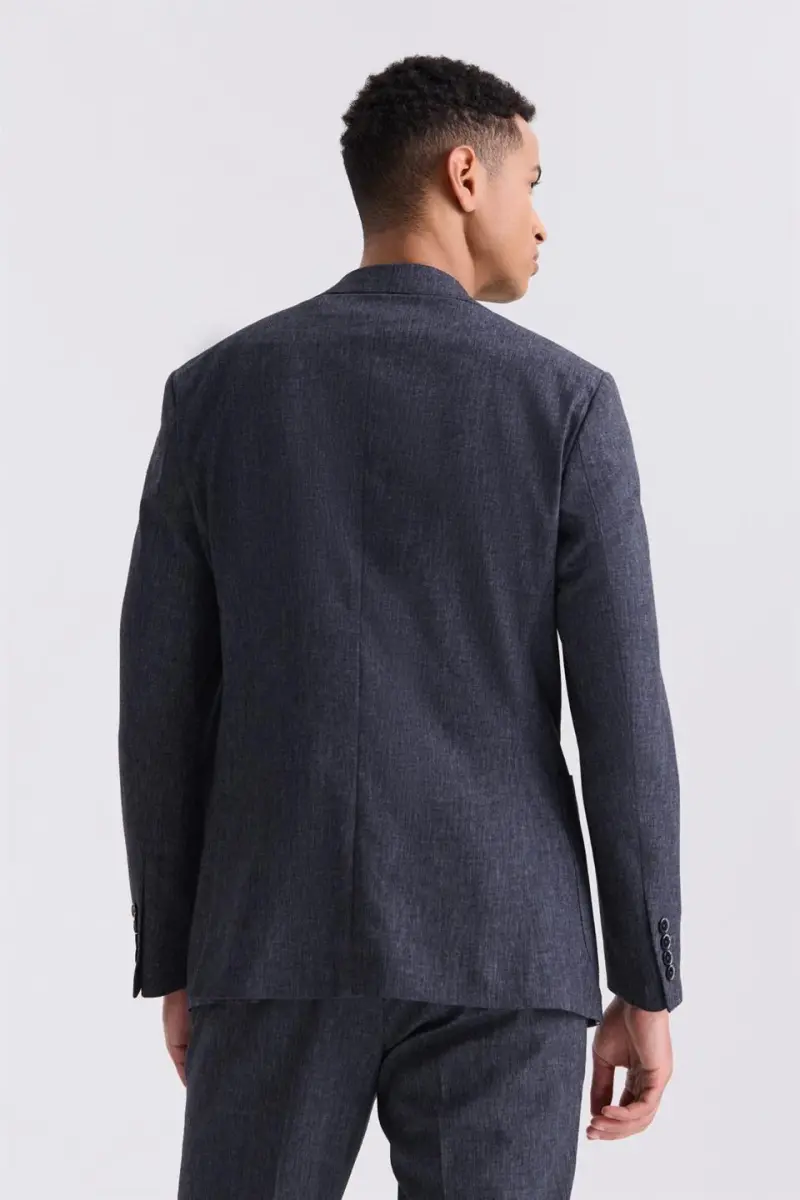 Koyu Lacivert Slim Fit Keten Takım Elbise: Şık ve Rahat