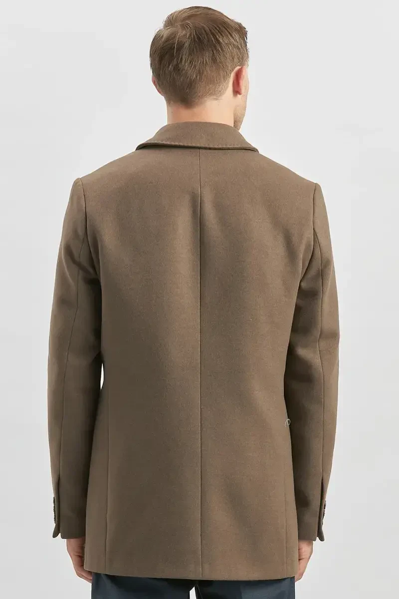 Kaban, to‘q mo‘yna, kaşmir, o‘smir yoqa, qulay bichim, klassik, jun aralashmasi, qavilgan, astarli, tugmali