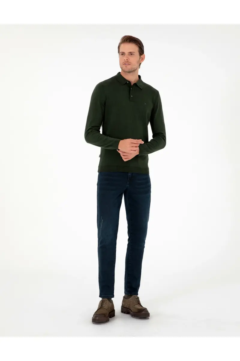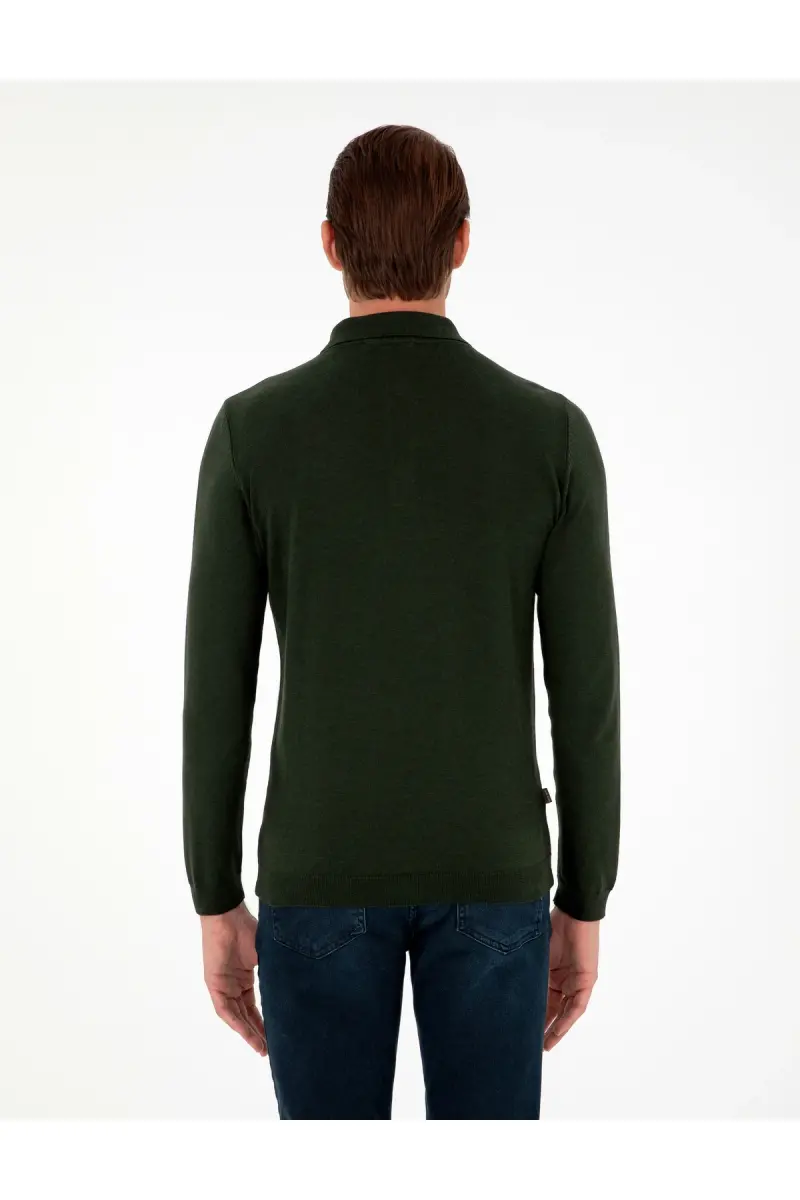 Koyu Yeşil Slim Fit Polo Yaka Basic Triko Kazak 50296623-VR079-Koyu Yeşil