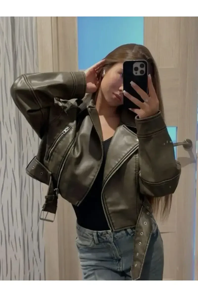 Отражайте свой собственный стиль и выделяйтесь в любой обстановке с кожаной курткой-бомбером в стиле оверсайз с поясом!