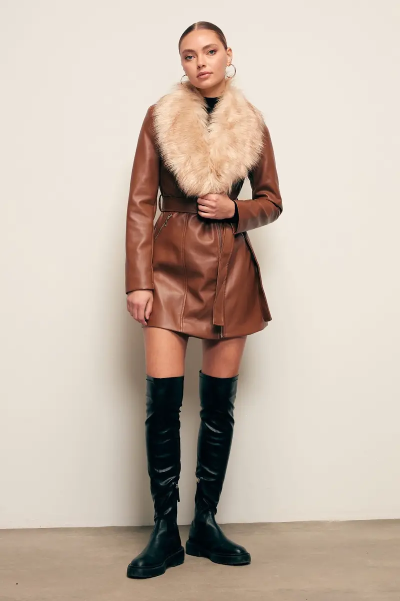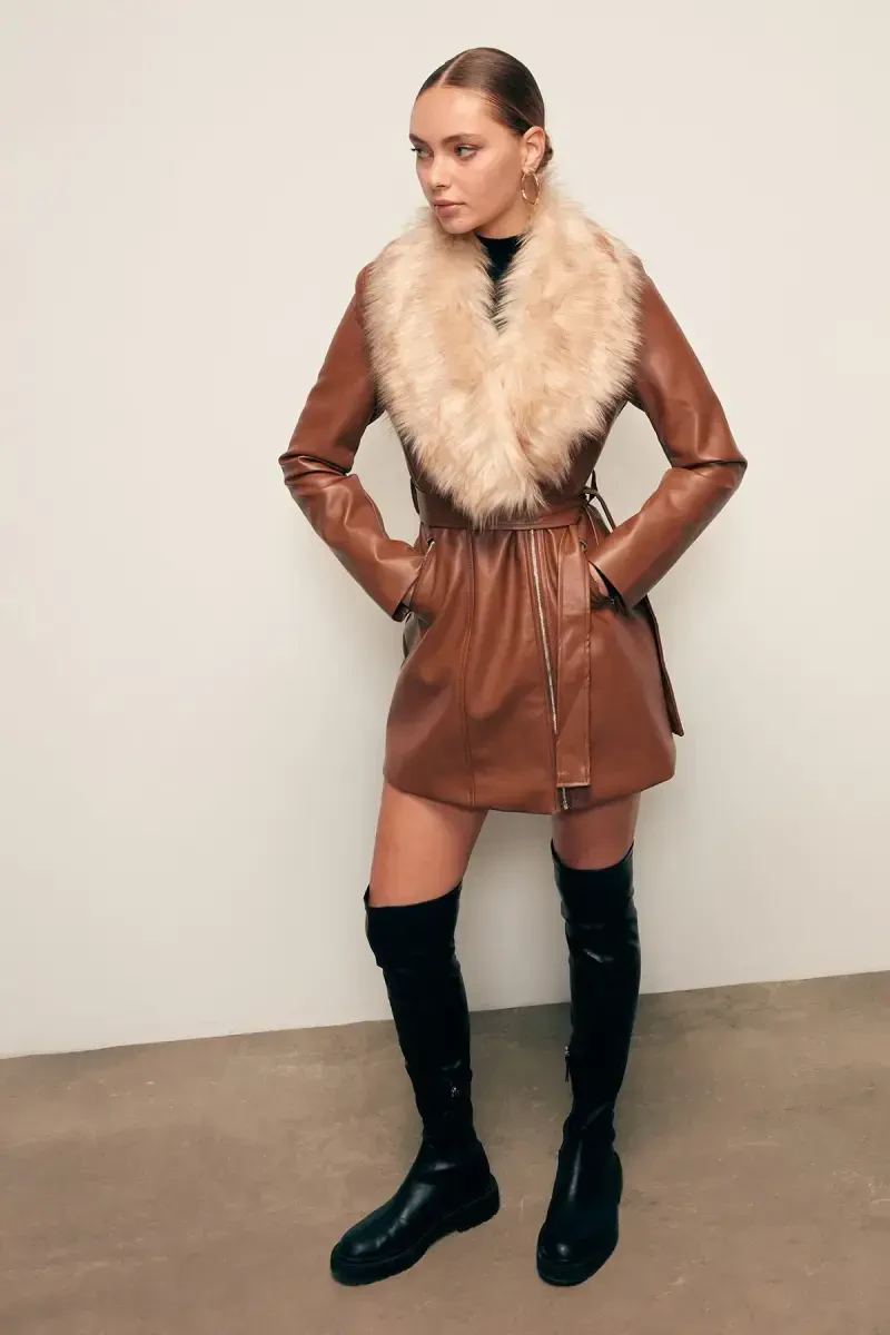 Сочетающая в себе стиль и тепло, кожаная куртка с меховой отделкой станет идеальным дополнением к вашему зимнему стилю. Изготовленная из высококачественной кожи, куртка обеспечивает комфорт благодаря своей мягкой и теплой меховой подкладке. Куртка украшена меховыми деталями на рукавах и плечах, которые элегантно оформлены и придают изысканность вашему стилю. Застежка-молния и карманы обеспечивают практичность, куртка подойдет к любому наряду. Кожаная куртка с меховой отделкой дополнит ваш стиль на особых мероприятиях и в повседневной жизни, придавая вам неповторимый образ.