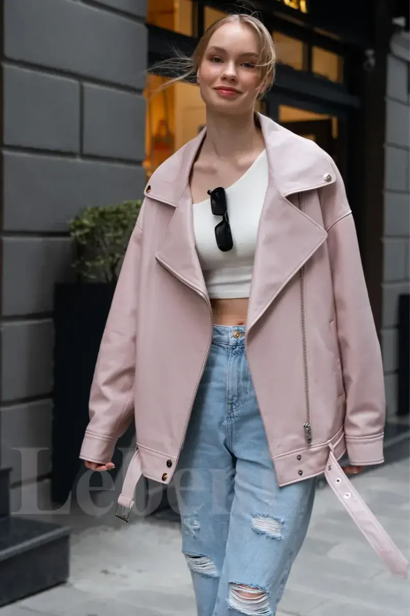 Женская кожаная куртка - женская куртка из натуральной кожи, байкерская куртка из натуральной кожи, кожаная куртка оверсайз - кожаная куртка пудрово-розового цвета создана для того, чтобы подчеркнуть стиль и уверенность современной женщины. Эта куртка, изготовленная из высококачественной натуральной кожи, сочетает в себе долговечность и элегантность. Отражая бунтарский дух байкерской куртки, она также позволяет вам получить удобный и модный вид благодаря крою оверсайз. Пудрово-розовый цвет придает куртке женственный и элегантный оттенок, что позволяет легко сочетать ее с различными нарядами. Носите ли вы ее с повседневной одеждой или дополняете свой шикарный образ на особом мероприятии, эта кожаная куртка всегда привлечет внимание. Качественные молнии, пуговицы и швы, используемые в деталях куртки, обеспечивают долговечность изделия, а внутренняя подкладка обеспечивает комфортное ношение. Кроме того, карманы на куртке обеспечивают как практичность, так и придают дизайну динамичный вид. Женская кожаная куртка - женская куртка из натуральной кожи, байкерская куртка из натуральной кожи, кожаная куртка оверсайз - кожаная куртка пудрово-розового цвета - это не просто предмет одежды, а и способ самовыражения. Заявите о своем стиле с помощью этой куртки и выделяйтесь в любой обстановке.
