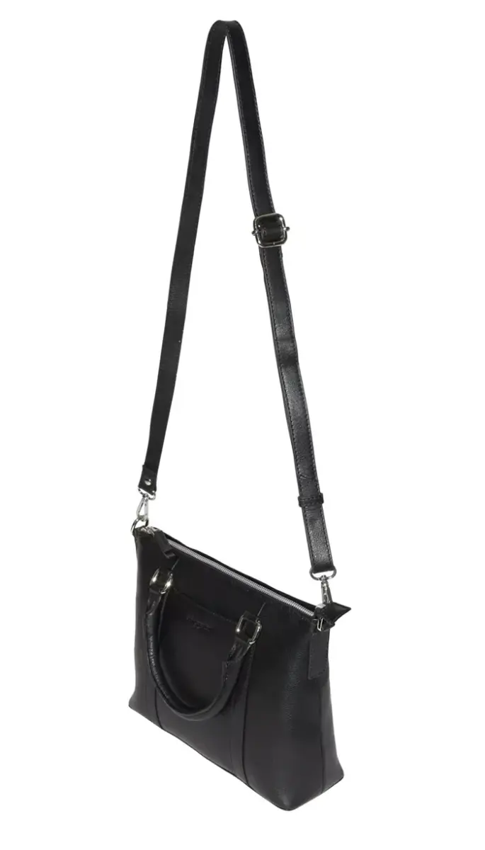 Leather Crossbody Bag with Top Handles - Black, uzun ömürlü kullanım için düzenli olarak deri bakım ürünleri ile temizlenmesi tavsiye edilir. Çantanın metal aksesuarlarının parlaklığını korumak için kuru bir bezle silinmesi yeterlidir. Ürünün garanti süresi boyunca üretim hatalarına karşı koruma altındadır. Herhangi bir sorun yaşamanız durumunda, yetkili satıcınızla iletişime geçebilirsiniz.
