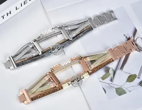 Подчеркните свой стиль с помощью браслета Boho из натуральной кожи ручной работы от ORATYFAN, совместимого с сериями Samsung Galaxy Watch 7/6/5/4 и многими другими моделями! Этот уникальный дизайн сочетает в себе такие элементы, как популярная кожа, бусины, мелкие искусственные бриллианты и цепочка из нержавеющей стали, добавляя вашему запястью особое сияние. Этот аксессуар, который заставит вас почувствовать, что на вас надеты разные браслеты, привлечет внимание в любой обстановке, будь то шопинг, работа, вечеринка, свидание или путешествие. Куда бы вы ни пошли, вы будете получать комплименты и уникально отражать свой стиль. Этот стильный и элегантный браслет — не просто ремешок для часов, а модное выражение, дополняющее ваш стиль. Каждая деталь, изготовленная вручную, придает браслету оригинальность и ценность, а используемые качественные материалы обеспечивают длительное использование. Обязательно попробуйте этот браслет Boho из кожи, чтобы почувствовать себя особенной и поднять свой стиль на новый уровень. Этот браслет, ставший еще более привлекательным благодаря дизайну цепочки, сочетает в себе классический и современный стили и подходит на любой вкус. Кроме того, вам не нужны никакие инструменты для регулировки размера. Просто удалите лишние звенья пальцем, чтобы браслет идеально сидел на вашем запястье. Это сэкономит вам время и усилия при надевании и снятии браслета. Этот браслет, подходящий для запястий размером 5,7–8,2 дюйма, поставляется с 3 дополнительными регулируемыми звеньями, поэтому вы можете легко добиться идеальной посадки. Кроме того, благодаря дизайну с изображением дерева жизни и символа бесконечности, он представляет собой значимый подарок для ваших близких. Эти символы символизируют бесконечную любовь, преданность и непрерывные отношения. Вы можете показать своей жене, друзьям, матери, дочери или возлюбленной, насколько вы их цените, подарив им этот браслет на день рождения, День матери, День благодарения, День святого Валентина, годовщину, Рождество или любой особый день. Этот особенный подарок еще больше укрепит ваши отношения и поможет вам создать незабываемые воспоминания.