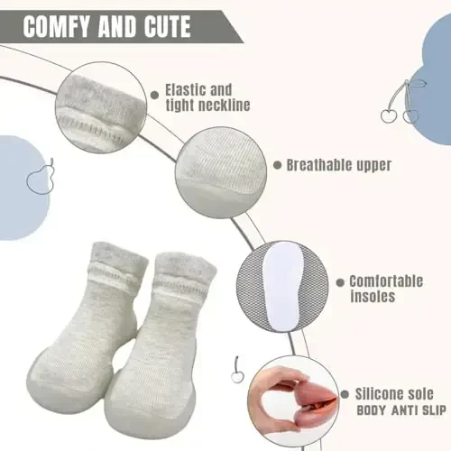 Kqwfsiu Baby Sock Shoes chaqaloqlarning birinchi qadamlari uchun idealdir. Kundalik foydalanish, maxsus tadbirlar va sovg'a sifatida tanlanishi mumkin. Har xil rang va naqsh variantlari mavjud. Chaqalog'ingizning oyoq sog'lig'ini himoya qiladi va qulay foydalanishni ta'minlaydi.