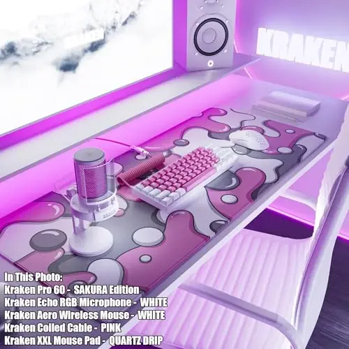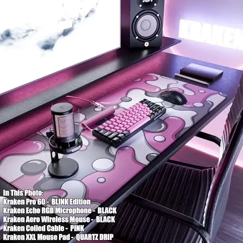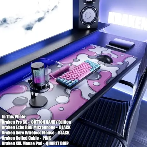 Kraken Gaming Mouse Pad Large Pink XXL, hem profesyonel oyuncular hem de günlük kullanıcılar için mükemmel bir seçenektir. Oyun oynarken veya çalışırken konfor, performans ve estetiği bir arada arayanlar için idealdir. "Quartz Drip" deseni, oyun istasyonunuza benzersiz bir hava katarken, yüksek kaliteli malzemeler ve dayanıklı yapısı uzun süreli kullanım sağlar. Bu mousepad, sadece bir aksesuar değil, aynı zamanda oyun deneyiminizi ve çalışma verimliliğinizi artıracak bir yatırımdır.