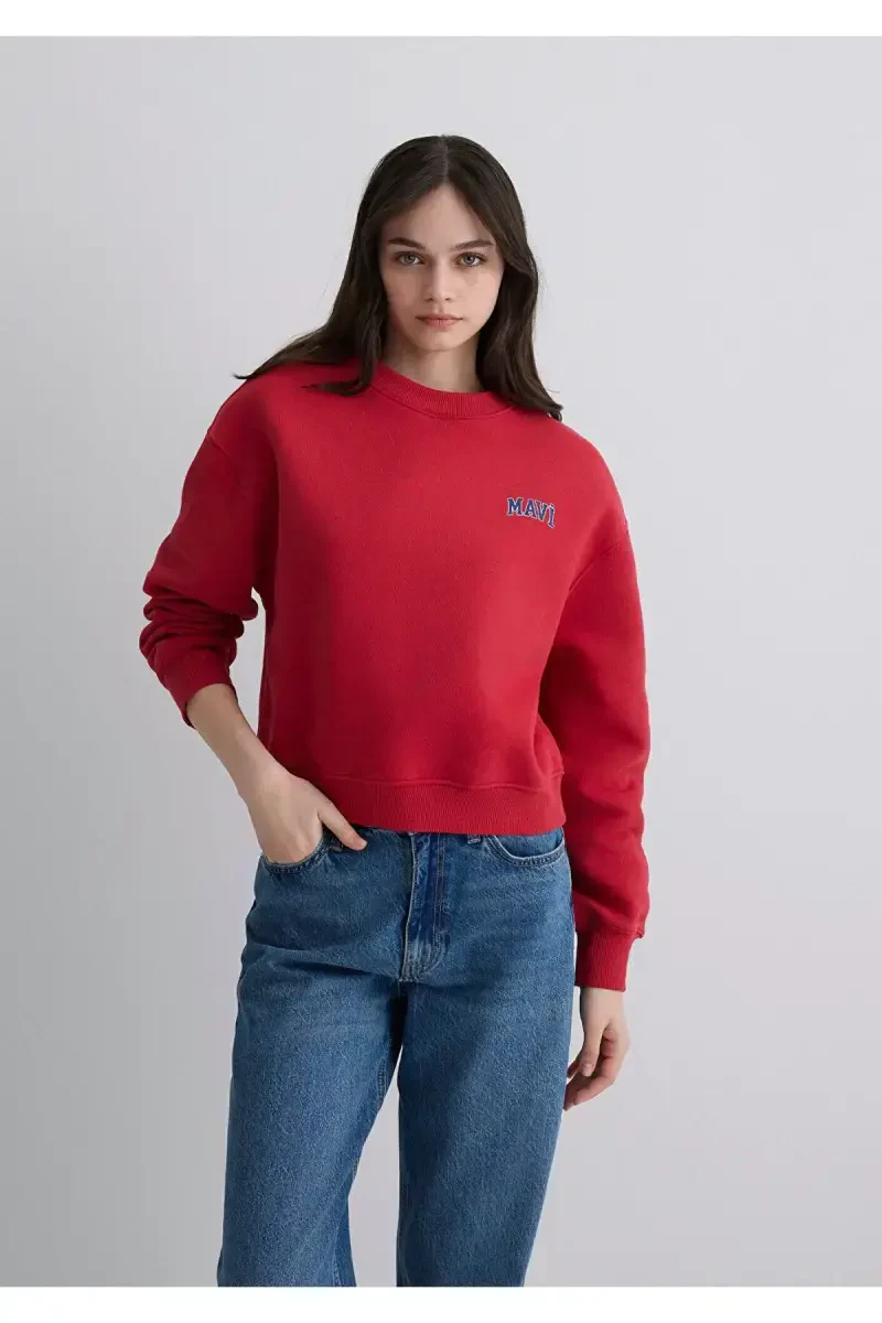 Сочетающий в себе стиль и комфорт, красный кроп-свитшот с логотипом станет новым фаворитом в вашем гардеробе. Этот свитшот, изготовленный из хлопковой ткани, обеспечивает комфорт в течение всего дня и отличается ярким красным цветом и стильным логотипом на передней части, дополняющим ваш образ. Крой кроп-топа идеально сочетается с любой одеждой, создавая стильный образ.