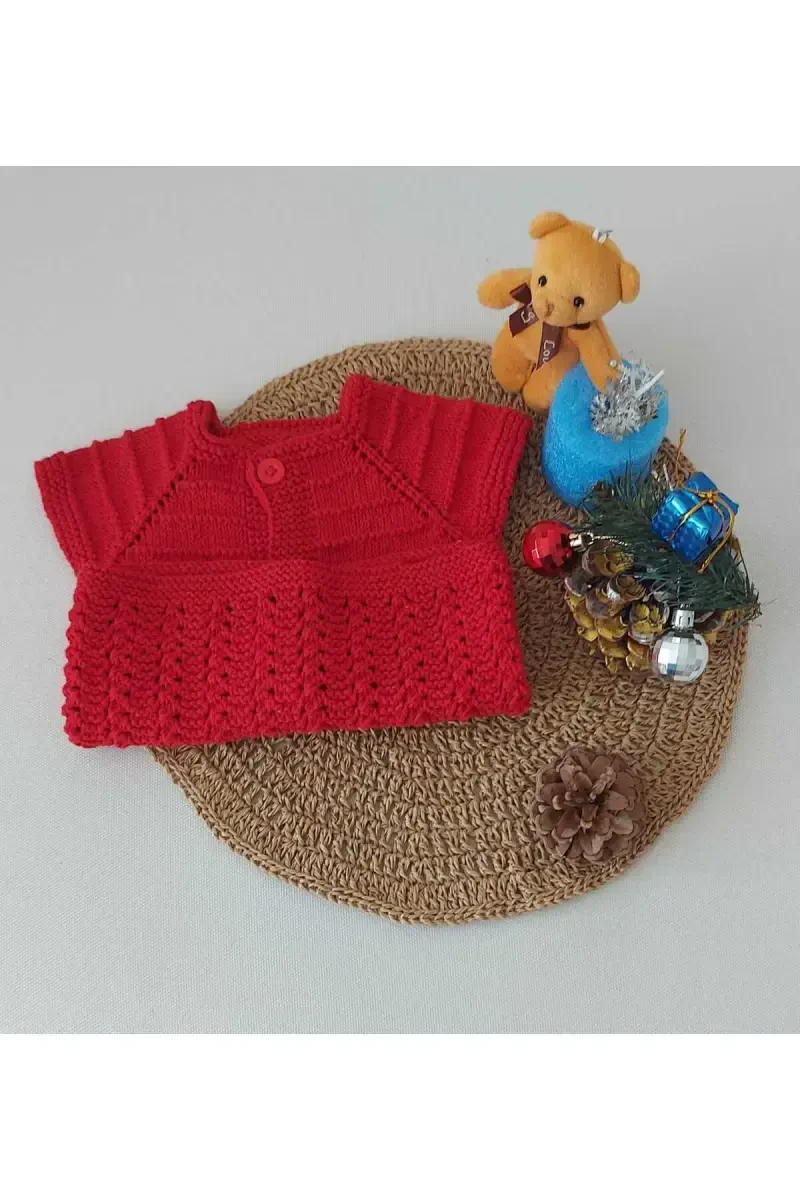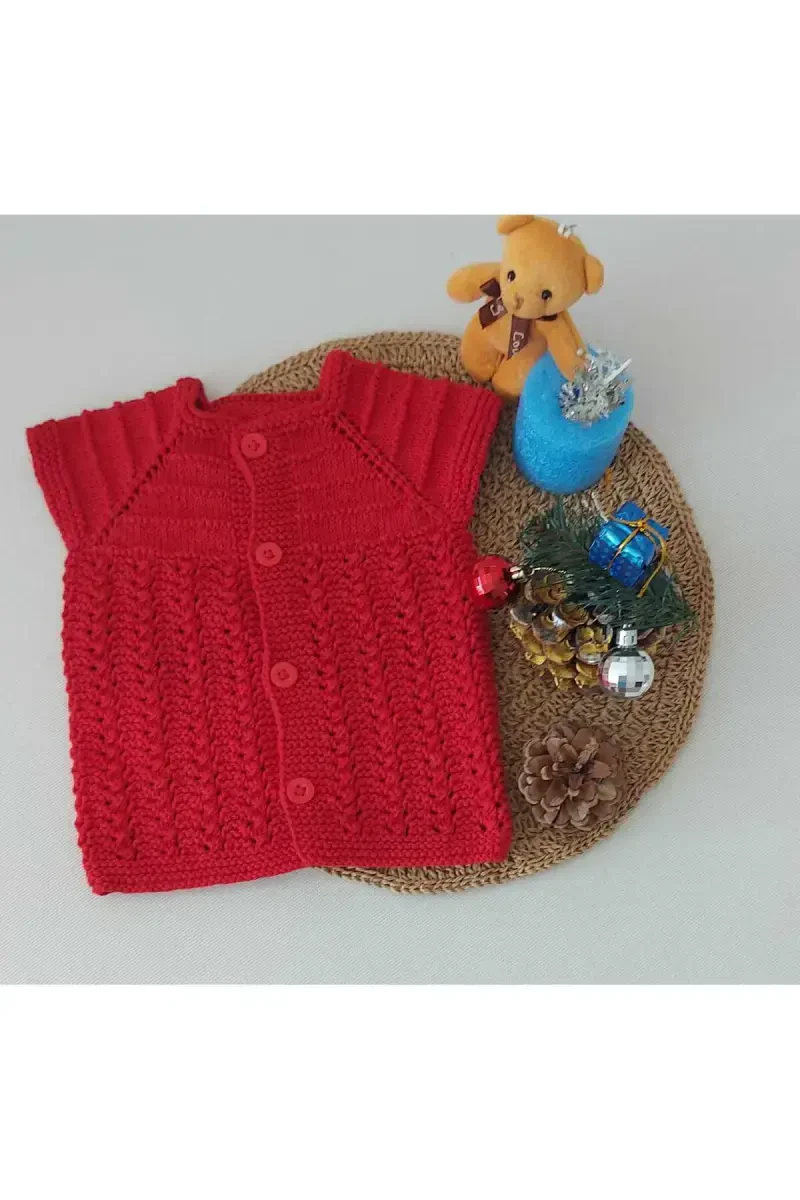 Изготовлено из 100% хлопка. Не вредит нежной коже вашего ребенка. Наше изделие связано вручную. Подходит для младенцев в возрасте 0-12 месяцев. На пуговицах, легко надевается. Идеальный подарок для особых случаев, таких как дни рождения, рождение ребенка. Красного цвета. Изготовлено из хлопковой пряжи.