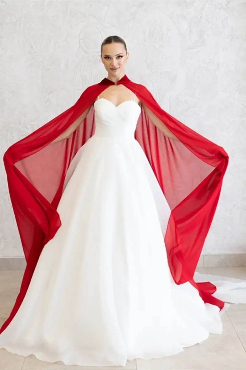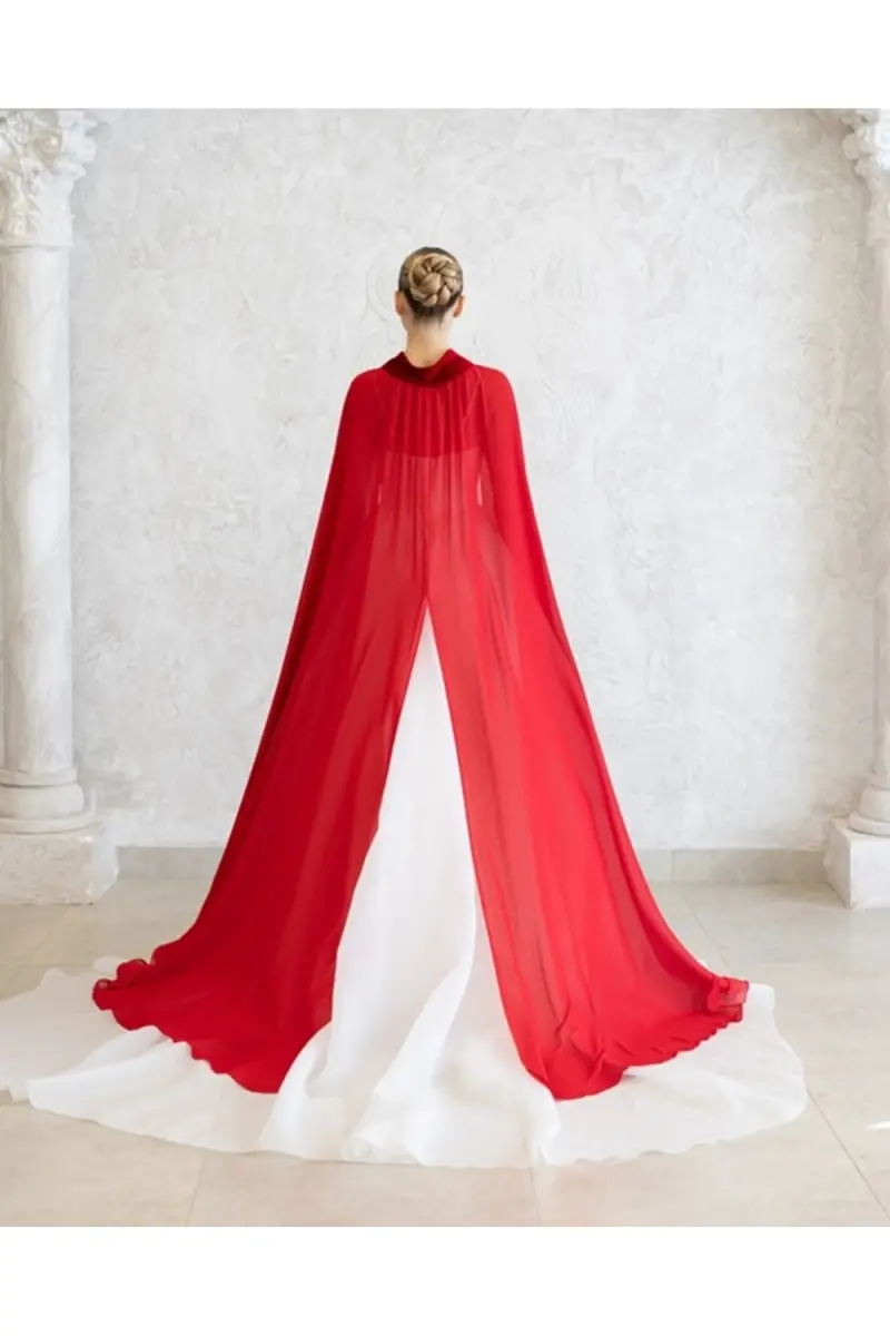 Красный шифоновый кафтан - верхняя накидка для невесты - Биндалли - платье для хны