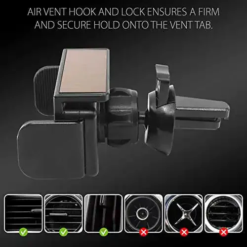 - Компактный дизайн: Легко крепится к воздушному вентиляционному отверстию вашего автомобиля, не занимая много места.