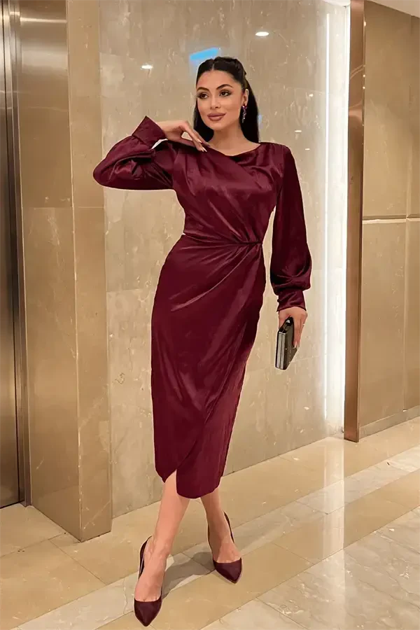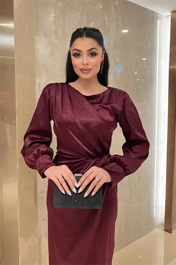 Burmali matodan tikilgan o‘ziga xos ko‘ylak bilan nafislik va go‘zallikni birga his eting! To‘q qizil rangning jozibasini o‘zida mujassam etgan ushbu eksklyuziv dizayndagi ko‘ylak sizning garderobingizning ajralmas qismiga aylanishga tayyor. Ushbu ko‘ylak ham maxsus tadbirlarda, ham kundalik chiroyingizda sizga hamroh bo‘lib, zamonaviy bichimi va qulayligi bilan ajralib turadi. Burmali matoning o‘ziga xos tuzilishi ko‘ylakka harakat va hayotiylik baxsh etsa, o‘ziga xos yoqasi ayollikni ta’kidlaydi. Qalam shaklidagi etak kesimi tana tuzilishini chiroyli tarzda ta’kidlab, zamonaviy va mukammal siluet yaratishga yordam beradi. Yon tomondagi fermuar detallari kiyinishni osonlashtiradi va ko‘ylakning umumiy dizayniga uyg‘unlik baxsh etadi. Astarsiz tuzilishi tufayli yengil va qulay foydalanishni ta’minlaydigan burmali matodan tikilgan o‘ziga xos ko‘ylak, ayniqsa bahor va yoz oylarida afzal ko‘rishingiz mumkin bo‘lgan ideal variantdir. Mahsulotning to‘liq bichimli bo‘lishi sizga mukammal mos kelishini va kun bo‘yi qulaylik his etishingizni ta’minlaydi. Cho‘zilmaydigan mato tufayli shaklini uzoq vaqt saqlab qoladi va doimo zamonaviy ko‘rinishingizga yordam beradi. 110 sm uzunligi bilan u ham past, ham uzun bo‘yli ayollar uchun ideal muvozanatni ta’minlaydi. Burmali matodan tikilgan o‘ziga xos ko‘ylak bilan qayerga bormang, e’tiborni tortasiz va uslubingizni eng yaxshi tarzda aks ettirasiz. To‘q qizil rangning jozibasi va ko‘ylakning zamonaviy dizayni tufayli siz doimo jozibali va nafis ko‘rinasiz. Ushbu maxsus ko‘ylakni poshnali tufli va zamonaviy sumka bilan birlashtirib, unutilmas uslub yarata olasiz. O‘zingizni maxsus his etish va chiroyingizni ta’kidlash uchun burmali matodan tikilgan o‘ziga xos ko‘ylakni hoziroq kashf eting!