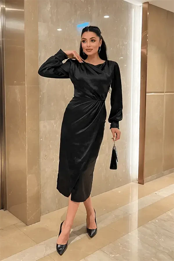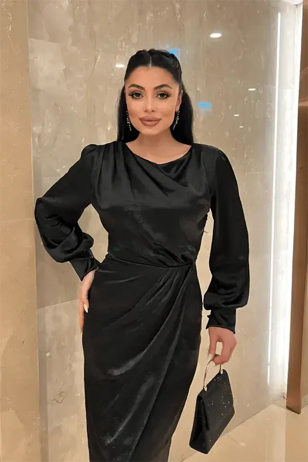 Krinkıl matosidan tikilgan o'ralgan qalam ko'ylak bilan nafislik va qulaylikni his qiling! Ushbu maxsus dizayndagi qora ko'ylak o'zining zamonaviy bichimi va ko'zni qamashtiruvchi detallari bilan shkafingizning ajralmas qismiga aylanadi. Krinkıl matosining o'ziga xos tuzilishi ko'ylakka harakat va dinamizm qo'shsa, o'ralgan bichimi tana chiziqlaringizni mukammal tarzda ochib beradi. Qalam yubka shakli nafis va zamonaviy ko'rinishni taqdim etib, uni ham kundalik foydalanish, ham maxsus tadbirlar uchun ideal tanlov qiladi.Ko'ylakning yon tomondan fermuarli bo'lishi uni kiyish va yechishni osonlashtirsa, to'liq bichimli dizayni tanangizga mukammal tarzda mos kelishini ta'minlaydi. Cho'zilmaydigan matosi tufayli kun bo'yi o'z shaklini saqlab qoladi va sizga benuqson siluetni taqdim etadi. Astarsiz tuzilishi engil va nafas oladigan foydalanish tajribasini ta'minlasa, krinkıl matosining tabiiy tuzilishi tufayli ajinlar haqida tashvishlanmasdan osongina foydalanishingiz mumkin.Yelkadan 110 sm uzunlikdagi ushbu zamonaviy ko'ylak har qanday muhitda e'tiborni jalb qilishingizga yordam beradi. Uni poshnali tuflilar bilan birlashtirib, maxsus kechaga tayyorlaning yoki kundalik chiroyingizni to'ldirish uchun baletkalar yoki sandallar bilan foydalaning. Krinkıl matosidan tikilgan o'ralgan qalam ko'ylak sizning uslubingizni aks ettirish va o'zingizni yaxshi his qilishingiz uchun yaratilgan. Ushbu noyob ko'ylak bilan har bir lahzada nafosat va ishonchni his eting.Qoraning nafosatini va krinkıl matosining zamonaviy tuzilishini birlashtirgan ushbu ko'ylak shkafingizning eng sevimli qismiga aylanishga nomzod. Nafislik, qulaylik va sifatni bir vaqtda qidirayotgan ayollar uchun ajoyib tanlov bo'lgan Krinkıl matosidan tikilgan o'ralgan qalam ko'ylak bilan har doim ko'zni qamashtiring.