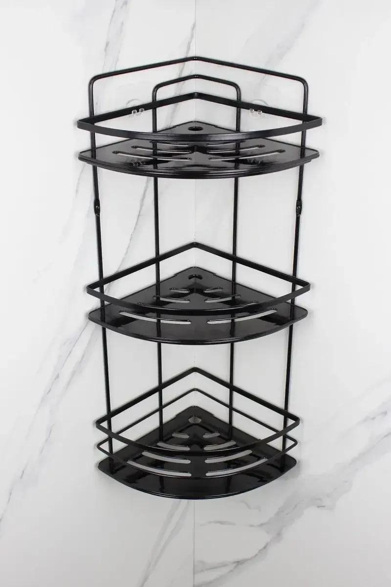 şampuanlık, banyo düzenleyici, köşe rafı, yapışkanlı raf, paslanmaz çelik, siyah lamba, kristal raf, banyo aksesuarı, duş rafı, üçlü şampuanlık