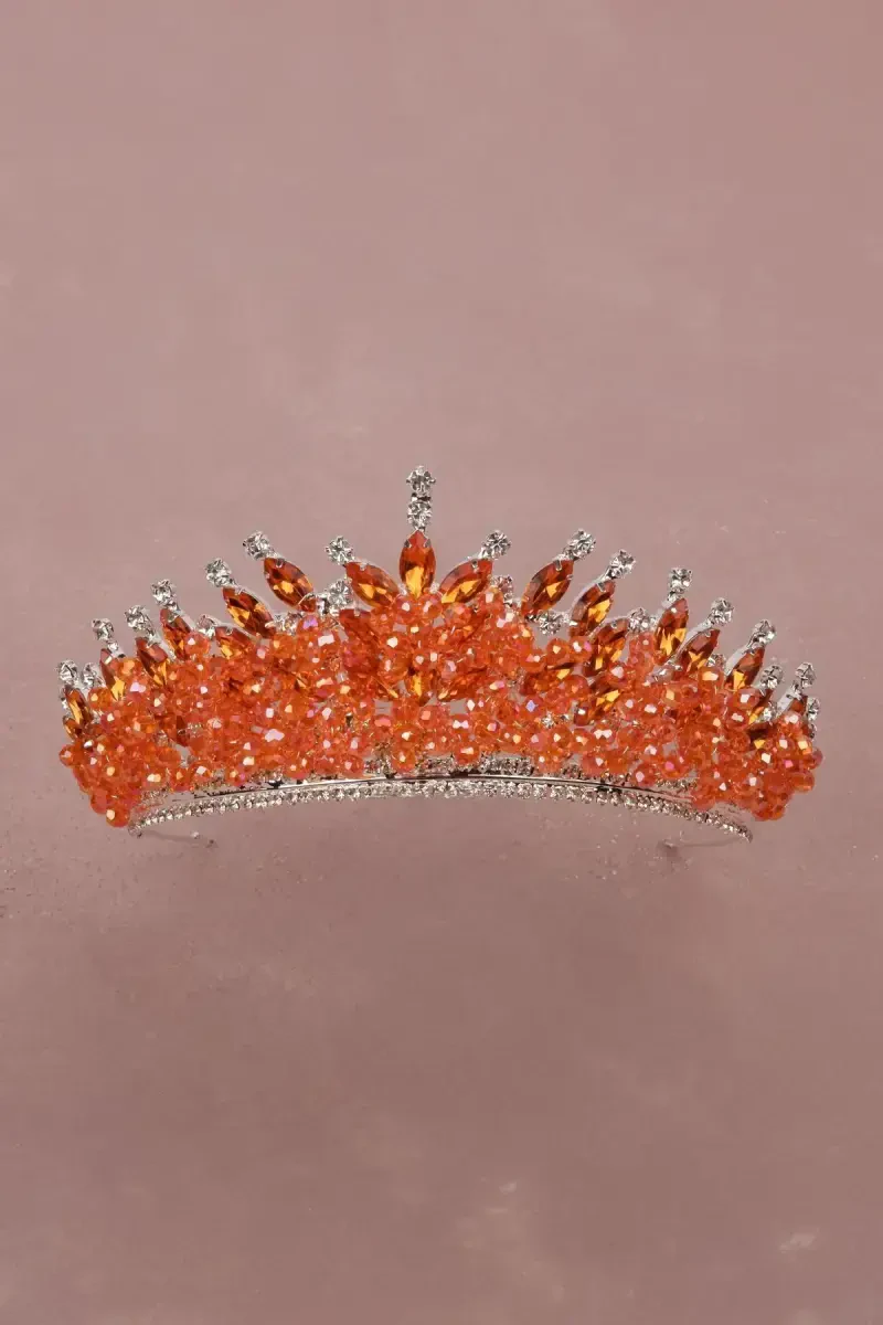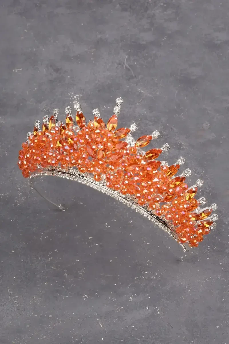 Orange Crystal Stone Bridal Crown | Wedding & Henna Crown