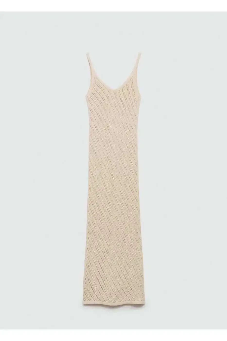 Expertly crafted, the Crochet Knit Dress embodies timeless elegance and comfort. Made from a luxurious blend of 56% cotton, 42% polyester, and 2% virgin capli polyester, this dress is soft, breathable, and drapes beautifully.Featuring a flattering maxi length, V-neckline, and delicate spaghetti straps, the Crochet Knit Dress exudes sophistication. Intricate lace details add a feminine touch, while the form-fitting silhouette hugs your curves perfectly. Sleeveless design keeps you cool on warm summer days.Ideal for everyday wear, this dress also transitions effortlessly to special occasions and dressy environments. Measuring 113 cm in back length, the Crochet Knit Dress can be styled with various accessories to create diverse looks.Easy to care for, this dress can be hand washed at 30°C. Avoid using bleach, iron at a maximum temperature of 110°C, do not dry clean, and do not tumble dry.The Crochet Knit Dress is a versatile wardrobe staple that will elevate your style throughout the seasons.