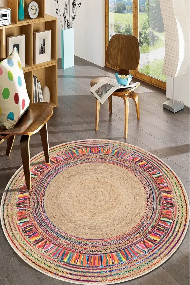 Познакомьтесь с круглым ковром с цифровым принтом в виде плетеной ротанга, моющимся, с нескользящим основанием для гостиной, кухни, балкона и ванной комнаты, который добавит изысканности и комфорта в каждый уголок вашего дома! Эстетичный вид натурального плетеного ротанга поможет вам создать современную и стильную атмосферу, а яркие цвета, полученные с помощью технологии цифровой печати, добавят энергии в ваше жилое пространство.
