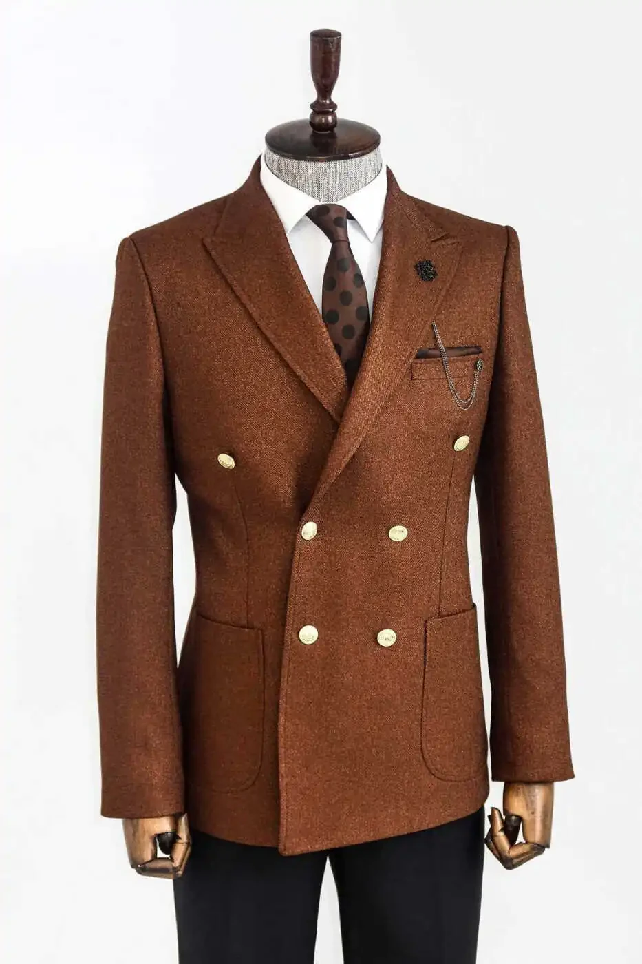 Двубортный крой обеспечивает современный и утонченный образ, а посадка Slim Fit идеально подчеркивает вашу фигуру. Коричневый цвет – это классика, которая сочетается с любым нарядом.
