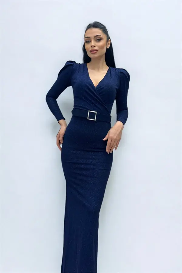 Kruvaze Yaka Kemer Detaylı ElbiseKumaş Türü: Simli KumaşÜRÜN DAR KALIPTIR BİR BEDEN BÜYÜK TERCİH EDİLEBİLİRÜrün uzunluğu: 150cm. (1-3 cm. değişiklik gösterebilir.)Modelin üzerindeki ürün S/36 bedendir.Modelin Ölçüleri: Göğüs 85, Kalça 92, Bel 69 cm. 'dir.