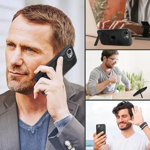 The KSELF iPhone 16e Leather Case is a premium accessory that stylishly protects your phone while providing ease of use. This case is crafted from a perfect combination of premium PU leather and a non-slip TPU frame. This ensures that you get a luxurious look and a secure grip while holding your phone. The precise button design allows you to easily access all functions of your phone.One of the most striking features of the case is its built-in metal kickstand. This metal kickstand provides solid support for your iPhone 16e, significantly enhancing your experience of watching videos, enjoying movies, or even participating in video conferences. The kickstand secures your phone in either portrait or landscape mode, adapting to different usage scenarios.The KSELF iPhone 16e Leather Case not only offers protection and functionality but is also aesthetically pleasing. The special logo cutout on the back of the case preserves the original design of your iPhone while adding a stylish and unique touch. This makes your phone an accessory that reflects your personal style. Whether for yourself or your loved ones, the KSELF iPhone 16e Leather Case makes a perfect gift for special occasions like Thanksgiving or Christmas.Thanks to the fingerprint and sweat resistance of the leather material, your phone always looks clean and new. The surface of the case minimizes fingerprints and sweat stains, preserving the aesthetics of your phone. This feature provides a great advantage, especially for phones that are subject to heavy use.The KSELF iPhone 16e Leather Case protects not only the back but also the screen and camera. The raised edges of the case protect the screen and camera from everyday scratches and minor drops. This ensures that the most sensitive areas of your phone remain safe and prevents potential damage. The case provides all the necessary protection for the iPhone 16e, extending the life of your device and keeping it as good as new. With the KSELF iPhone 16e Leather Case, you can use your phone safely and protect it without compromising on style.