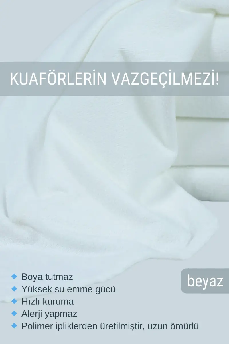Kuaförlere Özel Boya Tutmayan Mikrofiber Saç Havlusu, saç bakımında devrim yaratacak nitelikte bir üründür. Özellikle kuaför salonlarının ihtiyaçları göz önünde bulundurularak tasarlanmış bu 4'lü havlu seti, saç kurutma işleminde üstün performans ve hijyen sunar. Beyaz renkli bu havlular, hem profesyonel bir görünüm sağlar hem de boya lekelerinin kolayca fark edilmesini önler. 50x90 cm boyutları, farklı saç uzunlukları için idealdir ve yeterli yüzey alanı sunarak saçın hızlı ve etkili bir şekilde kurutulmasına olanak tanır. Mikrofiber kumaşın benzersiz emiciliği sayesinde, saçlarınızdaki fazla suyu hızla emer ve böylece fön makinesiyle kurutma süresini kısaltır. Bu da hem enerji tasarrufu sağlar hem de saçlarınızın aşırı ısıya maruz kalmasını engelleyerek yıpranma riskini azaltır. Havluların boya tutmayan özelliği, kuaför salonlarında sıklıkla karşılaşılan bir soruna pratik bir çözüm sunar. Saç boyama işlemlerinden sonra havlularda oluşan lekeler, bu özel mikrofiber kumaş sayesinde kolayca temizlenir ve havluların ilk günkü görünümünü koruması sağlanır. Bu özellik, havluların kullanım ömrünü uzatır ve uzun vadede maliyet tasarrufu sağlar. Ayrıca, mikrofiber kumaşın yumuşak dokusu, saçlara nazikçe temas ederek elektriklenmeyi önler ve saçların daha kolay taranmasına yardımcı olur. Bu da müşterilerinizin konforunu artırır ve saç bakım deneyimini iyileştirir. Kuaför salonlarındaki yoğun kullanıma dayanıklı olan bu havlular, defalarca yıkanabilir ve özelliklerini kaybetmez. Yüksek kaliteli malzemeden üretilmiş olmaları, uzun süreli ve güvenilir bir kullanım sunar. İster profesyonel bir kuaför olun, ister evde saç bakımına özen gösteren bir birey olun, Kuaförlere Özel Boya Tutmayan Mikrofiber Saç Havlusu, saç kurutma deneyiminizi bir üst seviyeye taşıyacaktır. Saçlarınızın sağlığını korurken zamandan tasarruf etmenizi sağlayan bu havlu seti, kuaför salonunuzun veya evinizin vazgeçilmez bir parçası olacaktır. Beyaz rengin zarafeti ve mikrofiber kumaşın üstün performansı bir araya gelerek, saç bakım rutininizi daha keyifli ve verimli hale getirecektir.