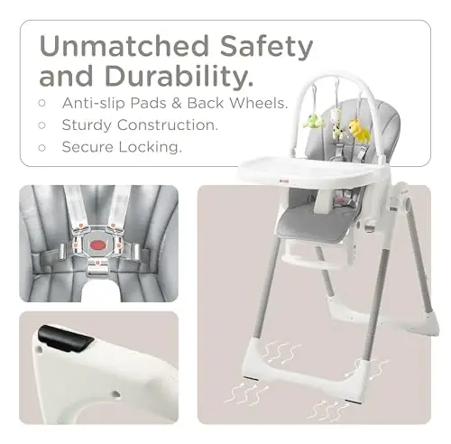 KÜB 3-в-1 Складной детский стульчик для кормления, 7 регулировок высоты и 4 положения наклона, легко моющийся поднос, 2 запираемых колеса, многофункциональные детские стульчики для кормления для младенцев и малышей (серый, с игрушками)Описание продуктаСделайте время кормления вашего ребенка приятным и безопасным с помощью складного детского стульчика для кормления KÜB 3-в-1! Этот универсальный стульчик для кормления адаптируется к процессу роста вашего ребенка и сопровождает его с рождения до периода, когда он начинает ходить. Этот стул, сочетающий в себе серый цвет и стильный дизайн, который подходит к любому декору, облегчает жизнь родителям благодаря практичному использованию и функциям, которые он предлагает. Стульчик для кормления KÜB, изготовленный из высококачественных материалов, разработан с учетом комфорта и безопасности вашего ребенка. Благодаря 7 различным регулировкам высоты вы можете адаптировать стул к своему столу, а с помощью 4 различных положений наклона вы можете обеспечить ребенку комфортный отдых. Широкий и легко чистящийся поднос сводит к минимуму разливы и беспорядок, экономя ваше время. Игровая панель на нем помогает вашему ребенку развлекаться во время еды. Меры безопасности соблюдены на самом высоком уровне. 5-точечный ремень безопасности обеспечивает безопасное сидение вашего ребенка в стульчике, а 2 запирающихся колеса помогают стулу оставаться устойчивым. Благодаря складной конструкции его можно легко хранить и транспортировать, когда он не используется. Складной детский стульчик для кормления KÜB 3-в-1 - это не просто стульчик для кормления, но и удобное место для отдыха и друг для игр вашего ребенка. Он предлагает все необходимые функции для здорового развития вашего ребенка. Благодаря эргономичному дизайну он поддерживает правильное положение ребенка, предотвращая тем самым проблемы с пищеварением. Этот стульчик для кормления, качественный и долговечный, прослужит вам долгие годы и сделает первые впечатления от еды вашего ребенка незабываемыми. Складной детский стульчик для кормления KÜB 3-в-1 - идеальный выбор для родителей, которые ищут практичность, безопасность и комфорт в одном месте. Этот стульчик для кормления станет вашим самым большим помощником в процессе роста вашего ребенка и превратит время кормления в приятный ритуал. Стульчик для кормления KÜB, разработанный для комфорта вашего ребенка и вашего удобства, является необходимым продуктом для каждой семьи.Характеристики продукта* Многофункциональный дизайн 3-в-1: можно использовать как детский стульчик для кормления, детское кресло и игровой стульчик.* 7 различных регулировок высоты: подходит для разных высот стола.* 4 различных положения наклона: обеспечивает ребенку комфортный отдых.* Легко чистящийся поднос: съемный и моющийся в посудомоечной машине.* Игровая панель: помогает вашему ребенку развлекаться во время еды.* 5-точечный ремень безопасности: обеспечивает безопасность вашего ребенка.* 2 запирающихся колеса: помогают стулу оставаться устойчивым и легко транспортируются.* Складная конструкция: легко хранить, когда не используется.* Эргономичный дизайн: поддерживает правильное положение ребенка.* Высококачественные материалы: прочный и долговечный.* Серый цвет: стильный и современный дизайн.Дополнительная информация