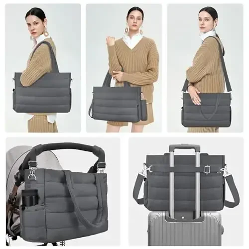 The KUBYA Diaper Bag Tote is a stylish and functional diaper bag designed to meet all the needs of modern parents. This versatile bag is an ideal solution for both daily use and travel. With its spacious interior, cleverly designed compartments, and lightweight construction, it allows you to carry everything you and your baby need in an organized manner. Whether you're going to the hospital, strolling around town, or embarking on a long journey, the KUBYA Diaper Bag Tote is equipped with practical features to make your life easier. The main compartment of the bag offers plenty of space for large items such as diapers, clothes, formula, and toys. The 7 small compartments inside help you store bottles, pacifiers, wipes, and other small items in an organized manner. The side pocket allows you to easily carry water bottles or thermoses up to 800 ml. The KUBYA Diaper Bag Tote is not only practical but also lightweight. Weighing only 370 grams, the bag's weight won't tire you out and offers comfortable use. Made of polyester material, the bag has a cloud-like soft touch and won't damage your clothes. A removable waterproof compartment is included to separate wet and dry items. Thanks to this feature, you can keep wet baby clothes or towels separate from other items and prevent bad odors or stains. After using the compartment, you can easily remove and wash it, so you don't have to clean the entire bag. The KUBYA Diaper Bag Tote comes with a pacifier container made of 100% food-grade silicone. Free of BPA, PVC, and lead, this container can be sterilized in the dishwasher, microwave, and at high temperatures up to 120°C. It is ideal for storing 2-3 pacifiers or small items such as earphones and can be easily attached to a bag or stroller. You can use this versatile bag as a handbag, shoulder bag, or crossbody bag. The adjustable shoulder strap gives you the freedom to choose the most suitable way to carry it. In addition, thanks to the two stroller straps, you can hang the bag on a stroller or suitcase and free your hands. The KUBYA Diaper Bag Tote is not only a diaper bag but also a stylish women's bag. It is suitable for work, travel, beach, picnic, office, and many other activities. With its elegant design and practical features, it is a perfect companion to accompany you in every aspect of your life. At KUBYA, we attach great importance to customer satisfaction. If you have any questions or concerns, please do not hesitate to contact us. We are here to provide you with the best service.