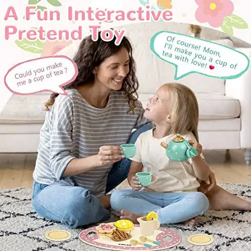 wooden tea set, pretend play kitchen, girls toys, role playing games, pretend play, tea party, 3 years old, 4 years old, 5 years old, kids toys