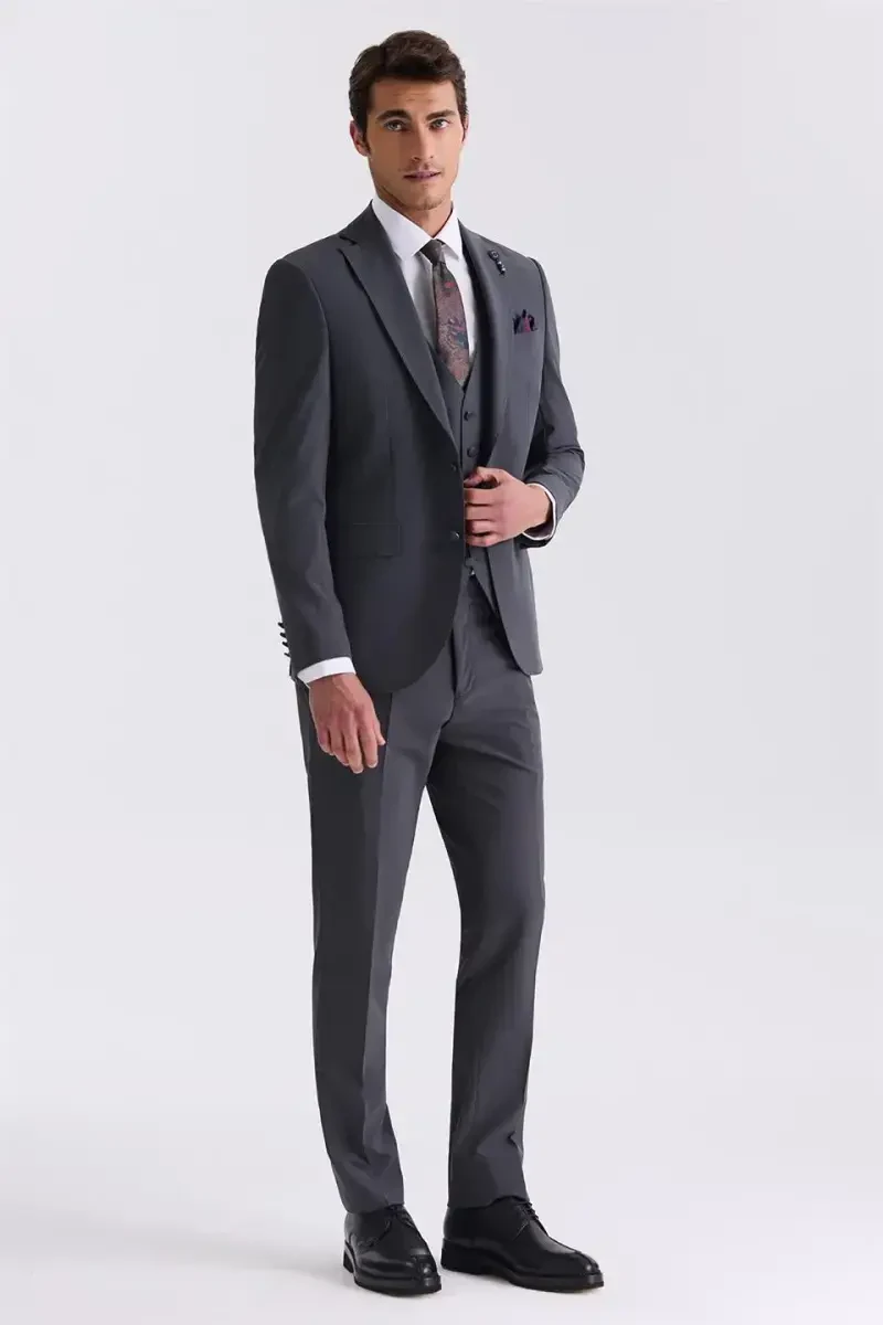 Antrasit rangda tor siyrak Mono yoqali ko'ylagi bo'lgan kostyumimiz bilan maxsus tadbirlarda, ish suhbatlarida yoki kundalik ish hayotingizda har doim o'ziga xos va o'ziga ishongan ko'rinishga ega bo'lishga tayyor bo'ling.