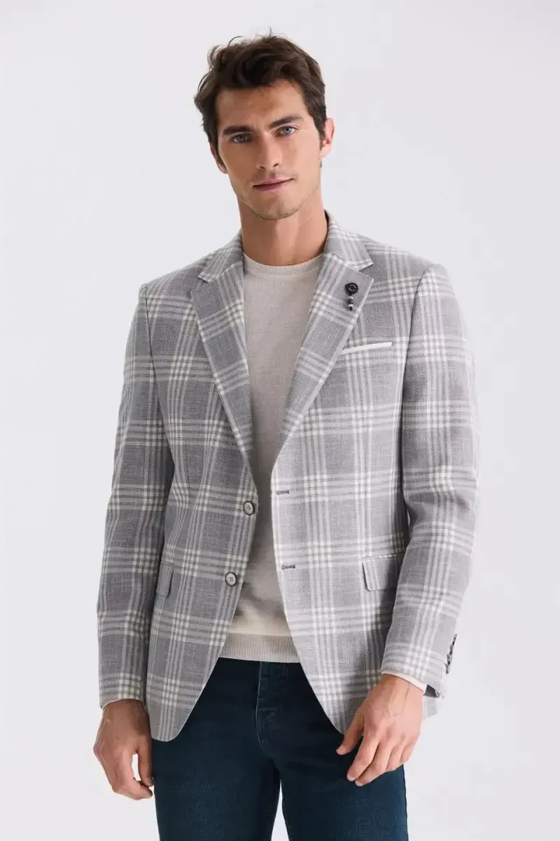 Kulrang Klassik Kesma Tartan Mono Yoqali Palto: Zamonlar Sinovidan O'tgan Go'zallik