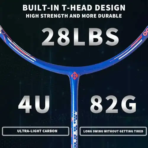 The KUMPOO Professional Badminton Racket is a lightweight, high-performance racket designed for both amateur and professional players. Its full carbon fiber shaft makes the racket light and quick to swing, enabling players to make faster and more precise shots. High-tension strings provide the racket with the ability to hit the shuttlecock with greater force and offer enhanced control.
