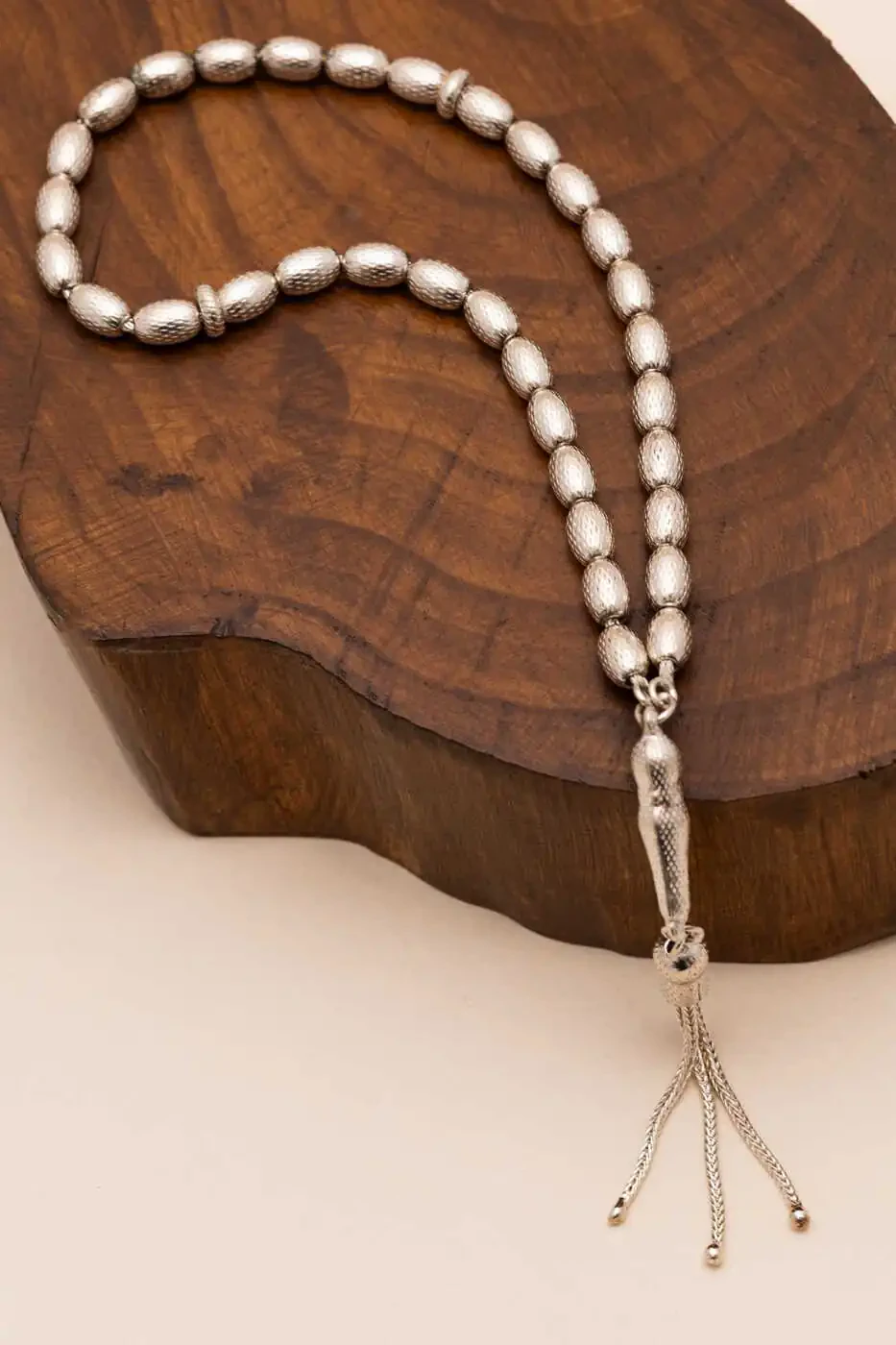 Kumush tasbeh, asrlar davomida ishlatilgan, diniy va madaniy jihatdan muhim bir aksessuardur. Arpa kesimli kumush tasbeh, an'anaviy dizaynga ega bo'lib, оrta оlchami va 20 gramm vazni bilan qulaylik bilan ishlatilishi mumkin.