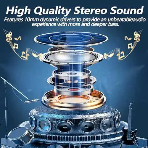 - Deep Bass and Crystal Clear Sound: Specially designed drivers deliver rich bass frequencies and crisp highs, allowing you to experience every musical detail.