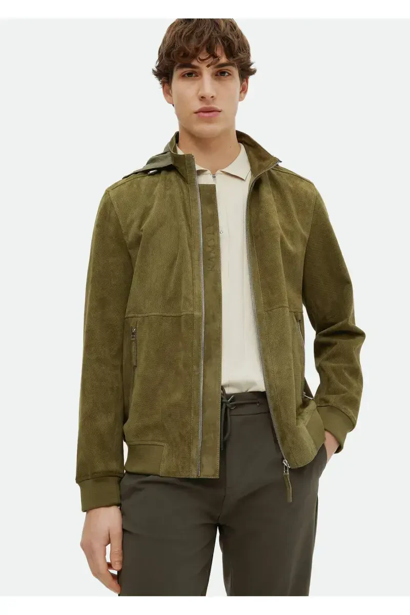 Кожаная куртка цвета хаки: Стильная и вневременная кожаная куртка | [Название бренда]