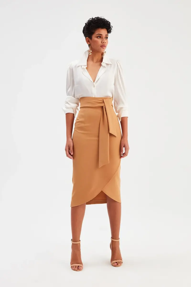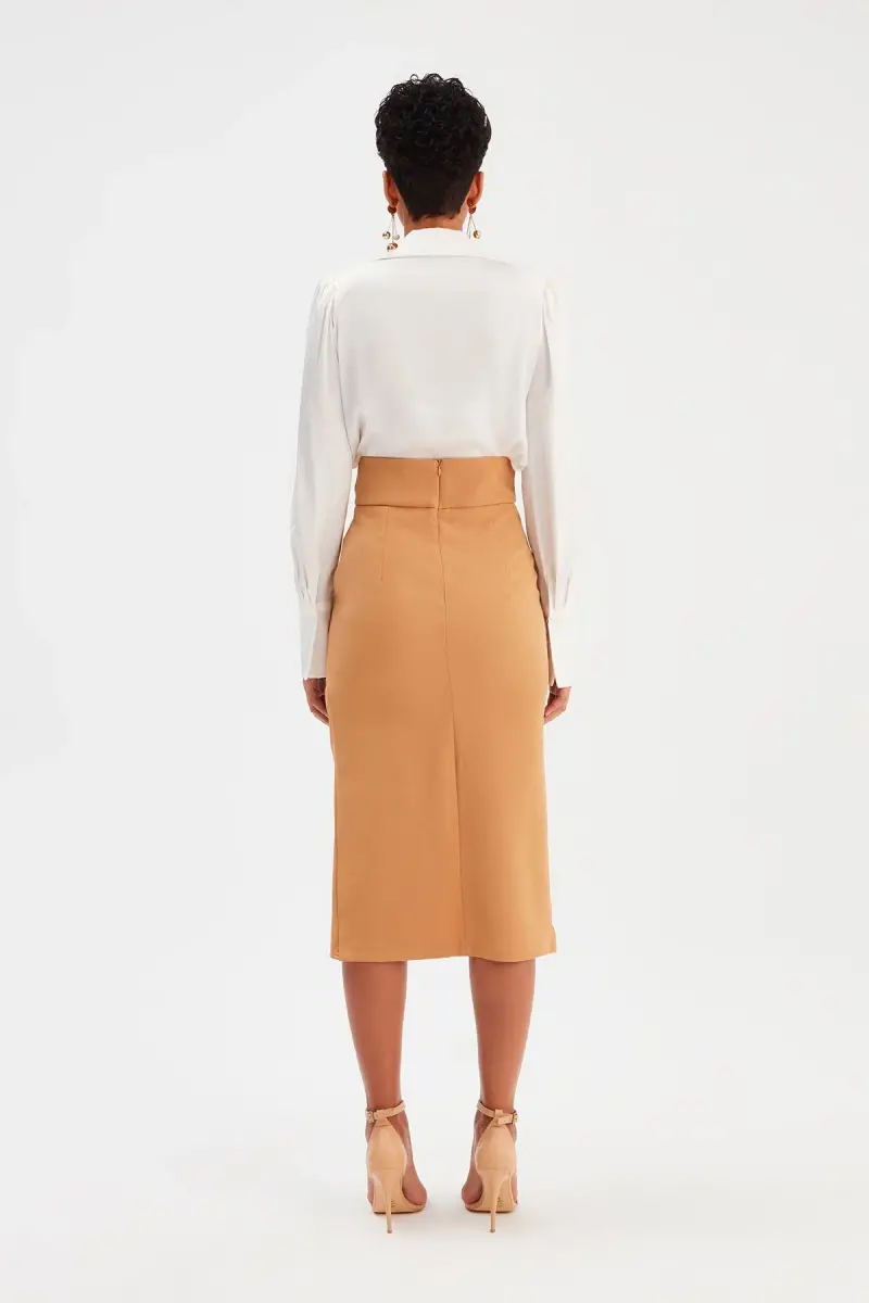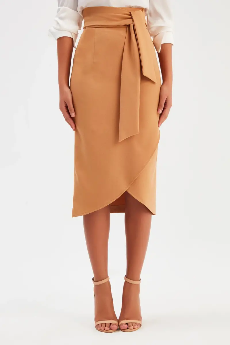 Kuşaklı Kalem Etek - Camel-CAMEL