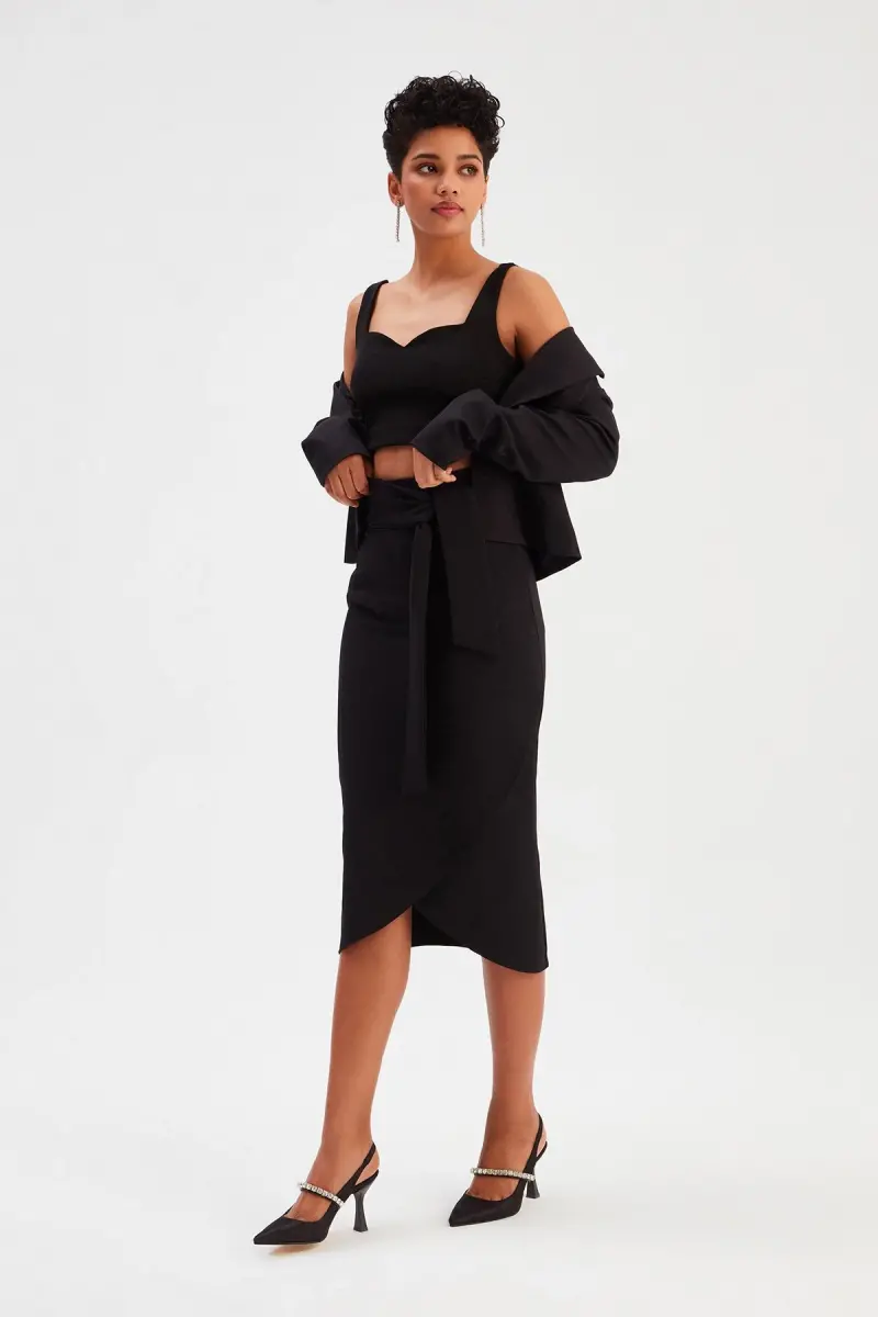 Kuşaklı Kalem Etek Siyah | Şık Ofis Eteği | Vücuda Oturan Model