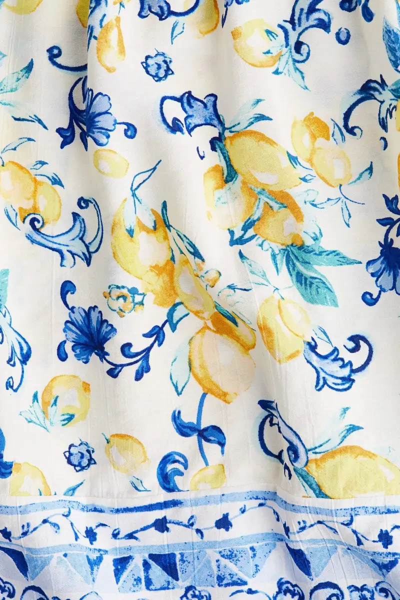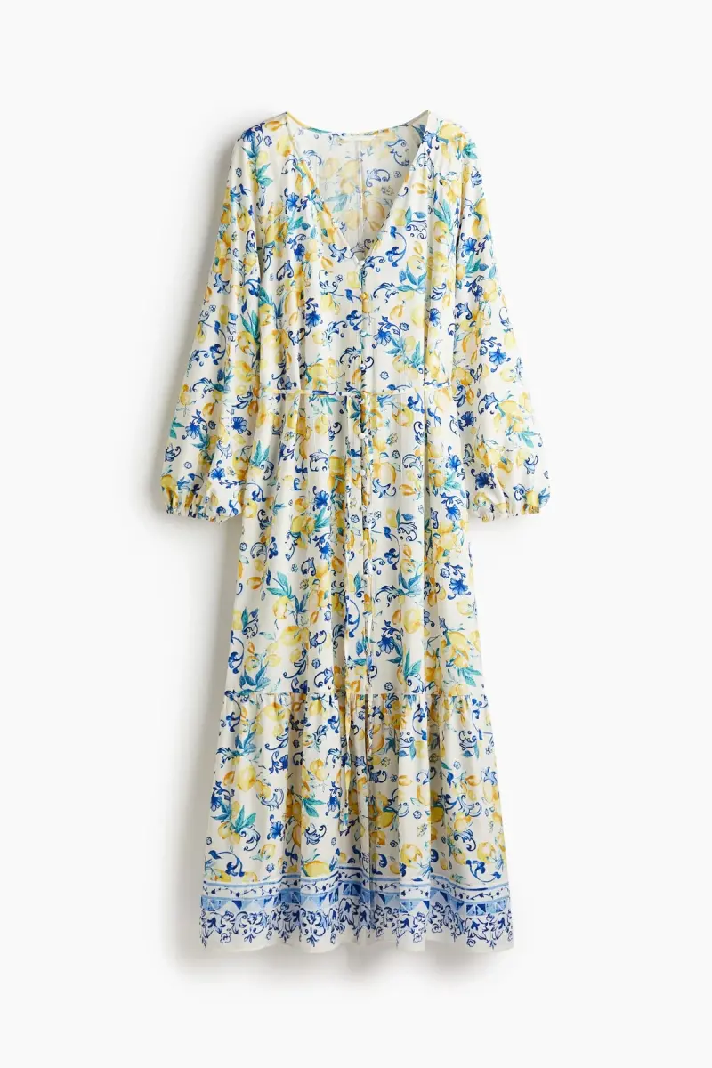 Kuşaklı Krep Elbise-Beyaz/Limonlar