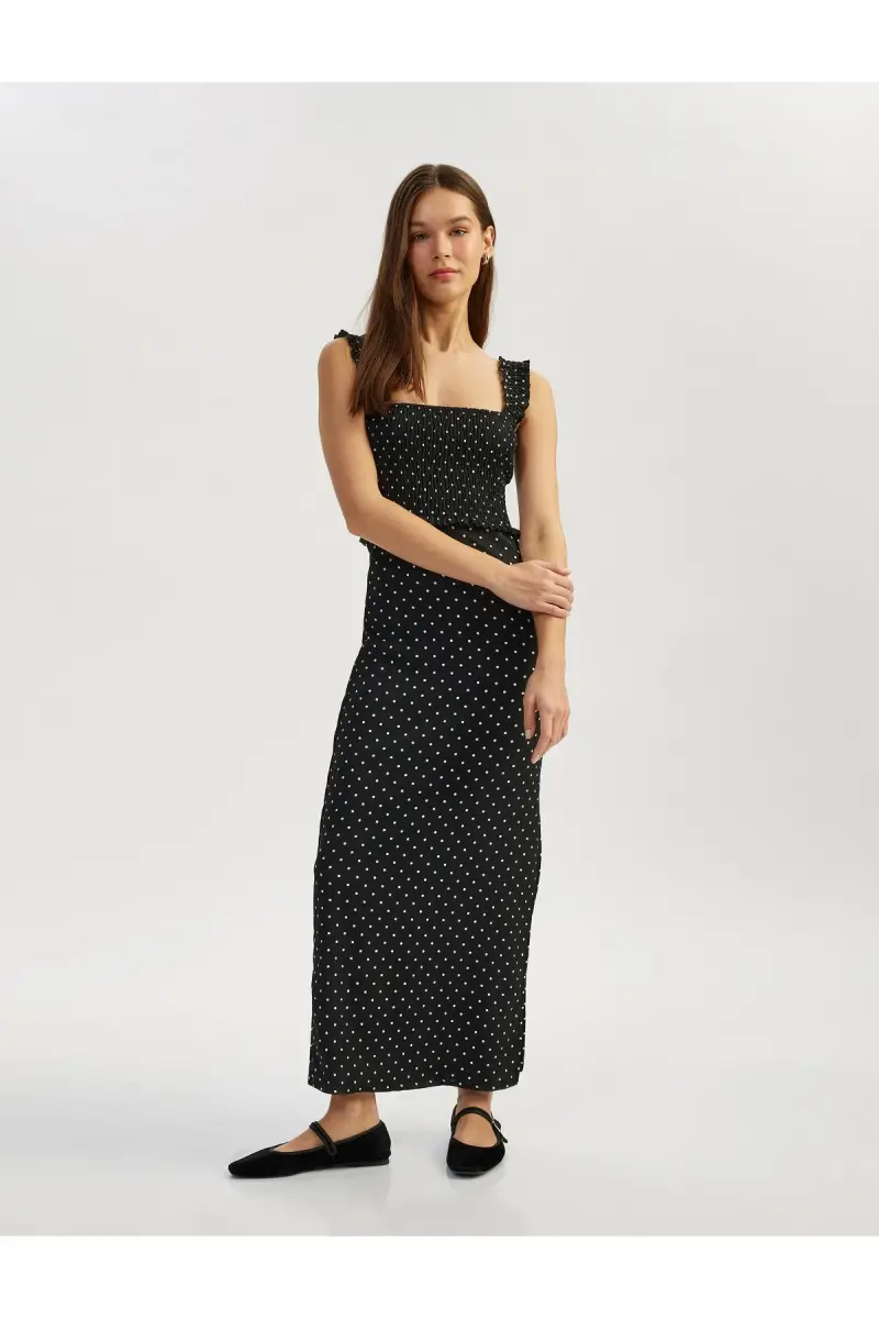 Оцените элегантность и комфорт с платьем миди в горошек из крепа с квадратным вырезом, толстыми бретелями и разрезом! Это эксклюзивное платье, тщательно разработанное Yeni Koza, станет незаменимым элементом вашего гардероба. Изящный квадратный вырез и привлекательный разрез подчеркивают ваш женственный силуэт, а толстые бретели обеспечивают комфорт в течение всего дня. Ткань крепе и стильный горошек позволят вам выделиться в любой обстановке. Длина миди обеспечивает элегантность, подходящую как для повседневного ношения, так и для особых случаев, а мятая ткань не ограничивает вашу свободу движений. Создайте ли вы шикарный образ с туфлями на каблуках или более повседневный стиль с сандалиями, это платье легко адаптируется к любому стилю. Современный и модный дизайн платья всегда будет на шаг впереди. Не пропустите это платье, которое станет незаменимым элементом вашего гардероба! Этот эксклюзивный дизайн, изготовленный компанией Yeni Koza, прослужит вам долго и поможет всегда отражать ваш стиль. Откройте для себя это платье прямо сейчас, и вы почувствуете себя особенной благодаря энергии горошка и комфорту мятой ткани. Ослепляйте всех своим присутствием в этом платье, сочетающем в себе элегантность и комфорт. Помните, этот уникальный дизайн выпущен ограниченным тиражом! Сделайте заказ прямо сейчас, воспользовавшись преимуществами быстрой доставки, и обновите свой стиль. Платье миди в горошек из крепа с квадратным вырезом, толстыми бретелями и разрезом - незаменимая вещь в гардеробе каждой женщины. Чего же вы ждете, чтобы отразить свою элегантность и стиль?