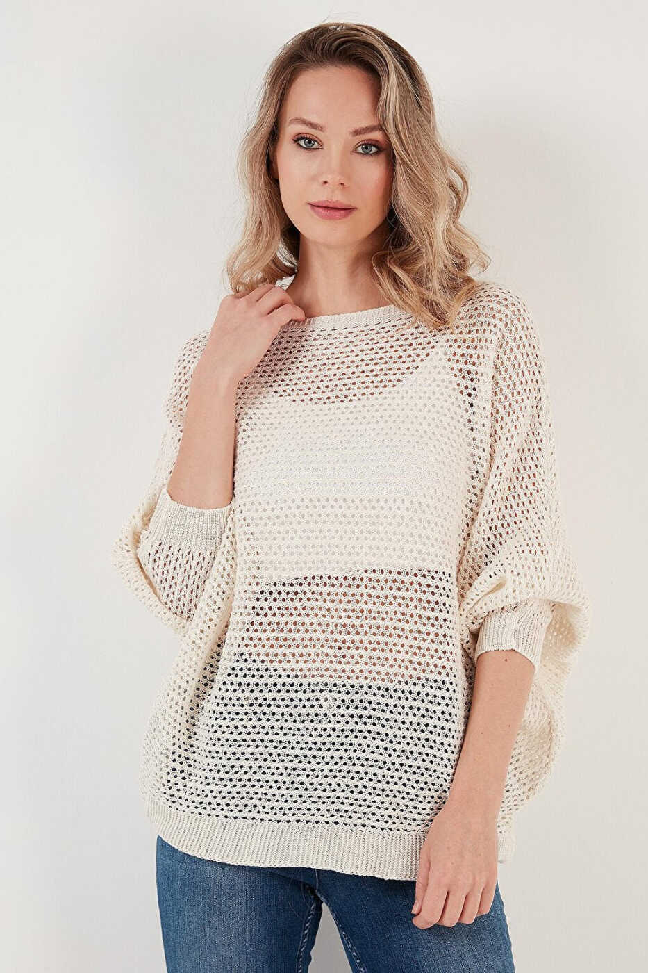 Combining style and comfort, the Batwing Sleeve Boat Neck Sweater with Lace Detail is destined to become a staple in your wardrobe. This sweater, with its soft and breathable fabric, offers all-day comfort, while its delicate lace details give it a stunning look. The batwing sleeves and boat neck design create a modern and stylish look, while its different color options make it suitable for any combination.