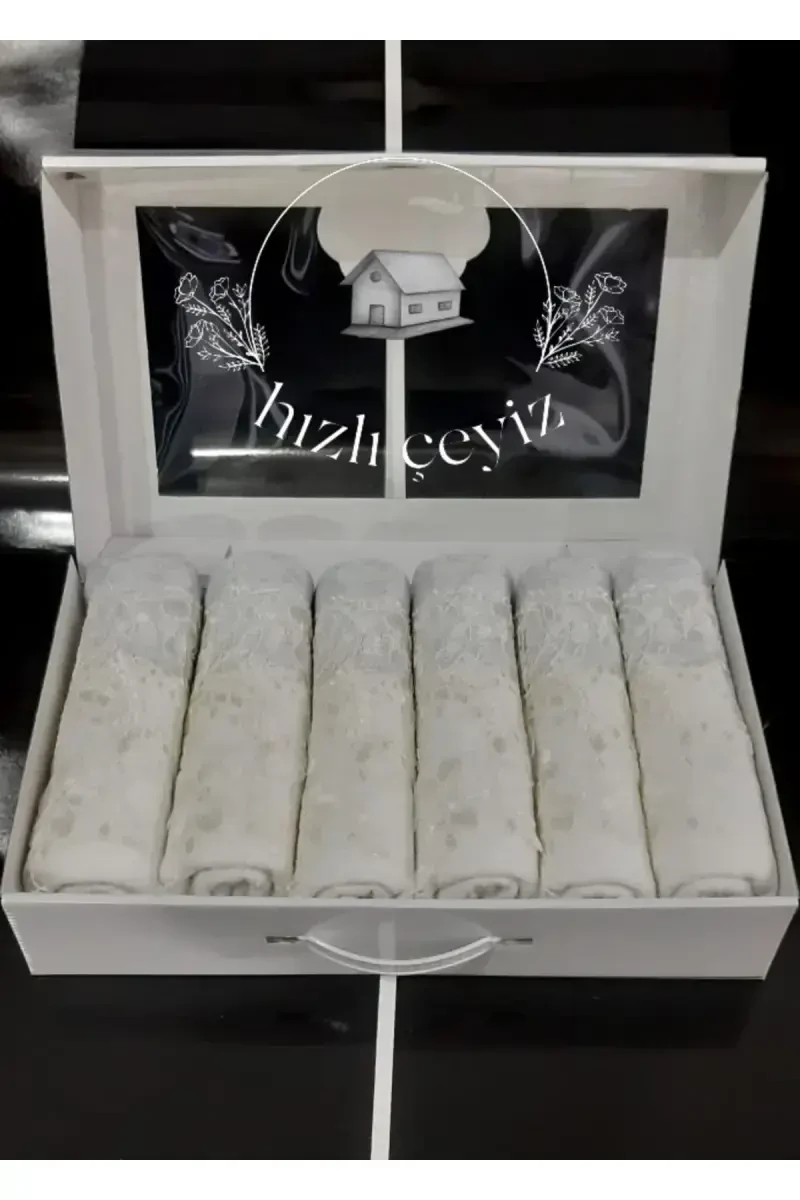 The 6-Piece Lace-Embellished Satin Embroidered Patterned Boxed Luxury Dowry 50x90 Hand and Face Towel Set brings elegance and luxury to your bathroom. This special set is offered with the assurance of Hızlı Çeyiz Y and is designed to elevate your bathroom experience. Each towel offers ideal use with its 50x90 cm dimensions and easily complements your bathroom decor with its ecru color. The set includes 6 face towels, allowing you to have enough towels for your family and guests. The lace-embellished satin embroidered pattern gives the towels a unique look, creating a stylish atmosphere in your bathroom. Embroidered details add an aesthetic touch to the towels, making them a perfect option for dowry. This set is not just a towel set, but also an elegant accessory that complements your bathroom decor. Thanks to its boxed presentation, it is also ideal for gifting to your loved ones. The product is made of high-quality materials and designed for long-lasting use. Its soft texture gently touches your skin and helps you relax after bathing. The towels absorb water quickly and dry quickly, so they are always ready for use. This luxury towel set not only adds elegance to your bathroom, but also offers a comfortable usage experience. Thanks to the option to buy individually, you can complete your set according to your needs or buy only the missing towels. Transform your bathroom into a spa center with the 6-Piece Lace-Embellished Satin Embroidered Patterned Boxed Luxury Dowry 50x90 Hand and Face Towel Set and enjoy luxury every day. This special set will turn your bath routine into a pleasant ritual and give you a privileged feeling with every use. Stocks of the product on Trendyol are kept limited, so hurry up and don't miss this unique opportunity. Remember, this set is not just a towel set, but also a value you add to your bathroom.