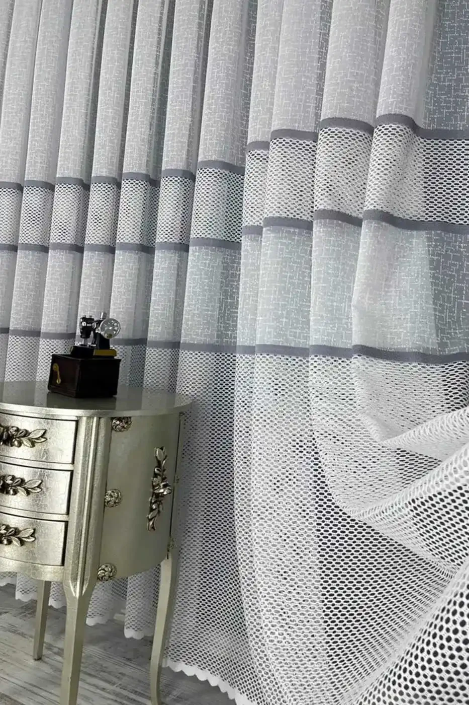 Adding elegance and sophistication to your home, the Sheer Pleated Applique Tulle Curtain Single Panel in grey adds a modern and minimalist touch. Its delicate pleated structure brings movement to your room, while its thin and transparent texture allows soft lighting without blocking sunlight.