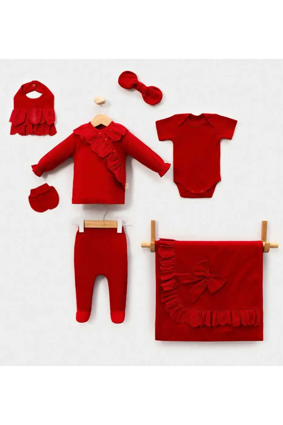 A perfect start for your little princess! The Crossover Lace Baby Girl Newborn 7 Piece Blanket Hospital Discharge Bodysuit Set offers comfort and elegance to your baby from her first days. Its soft cotton fabric gently touches your baby's sensitive skin, while the durable woven structure ensures long-lasting use. Produced in Turkey, this special set is designed with your baby's health and comfort in mind. Its practical design, suitable for daily use, is with your baby at every moment, from hospital discharge to her home routine. With its stylish and timeless plain pattern, your baby will always dazzle. With its rich content consisting of 7 pieces, everything you need is in one package! Reflecting the simplicity of the Basic collection, this set will be a staple in every wardrobe. Being made of organic materials contributes to a sustainable fashion sense while also caring for your baby's health. Its breathable cotton structure minimizes sweating, ensuring your baby's comfort throughout the day. Quality, comfort and elegance come together in this set! A perfect choice to make your baby's first moments unforgettable.