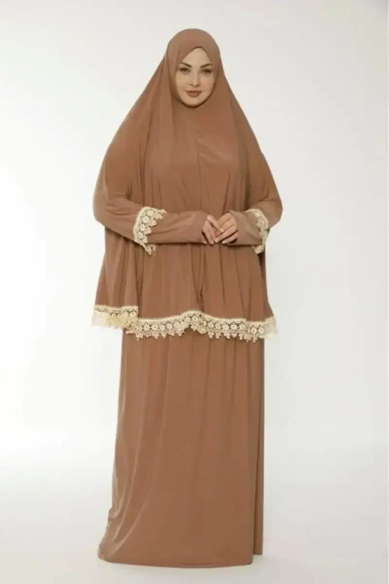 The Lace Detailed Hajj Umrah and Prayer Dress offered by Armiza combines elegance and comfort with its light brown color. This special design aims to appeal to women of all ages by blending the concept of modest fashion with modern touches. This dress, which perfectly reflects the modest clothing style thanks to its long length design, offers both a stylish and elegant look. The woven fabric increases the durability of the garment and ensures that it maintains its shape even with long-term use. This makes it a long-lasting option that you can easily choose for your special days and worship. Suitable for all body types thanks to its wide size range, this dress offers a modern stance with its oversized fit while at the same time it does not restrict your freedom of movement. With its casual style suitable for daily use, you can reflect your style by creating different combinations. It is a versatile piece that you can easily use during your Hajj and Umrah visits, while praying, or in your daily activities. The light brown color is an option that adapts to every environment and can be easily combined. The long-sleeved design fulfills the requirements of modest clothing while ensuring that you do not compromise on your elegance. This dress helps you find peace in a spiritual sense and allows you to reflect your style in the best way. Produced with Armiza quality, this outfit will be one of the indispensable pieces of your wardrobe.