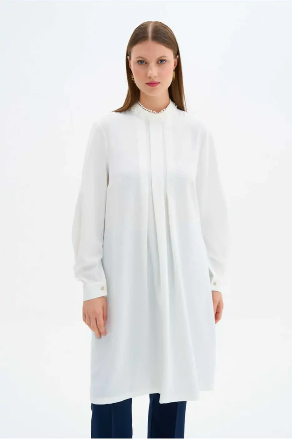 The Lace Trimmed Tunic, a perfect blend of elegance and comfort, will enhance your everyday style with a touch of sophistication. Its breathable fabric ensures all-day comfort and freedom of movement, while its delicate lace trim adds a touch of refinement to your look. Suitable for both casual and special occasions, this tunic will become an indispensable part of your wardrobe. The lace trim details create a refined look from top to bottom, emphasizing the elegance of the tunic's simple design. Its comfortable cut and soft texture easily suit all body types. If you want to experience both style and comfort in your daily life, the Lace Trimmed Tunic is perfect for you!