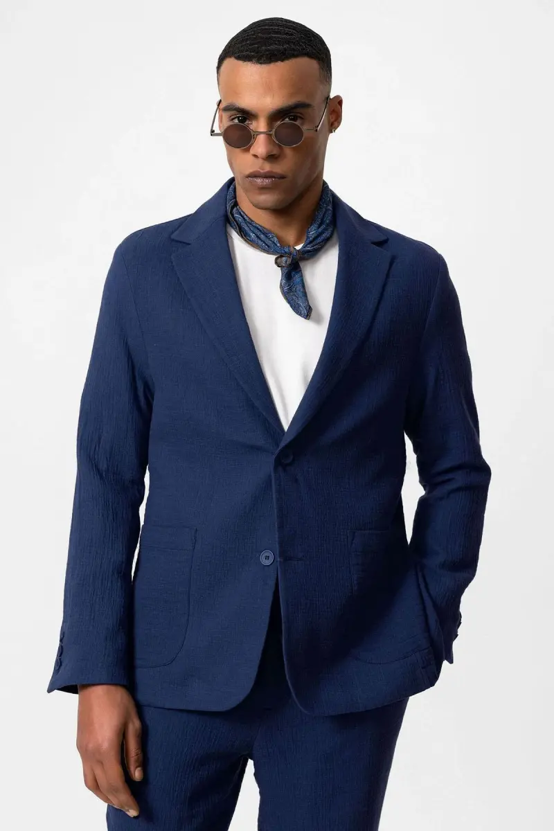 Lacivert Astarsız Torba Cepli Erkek Blazer Ceket-Lacivert
