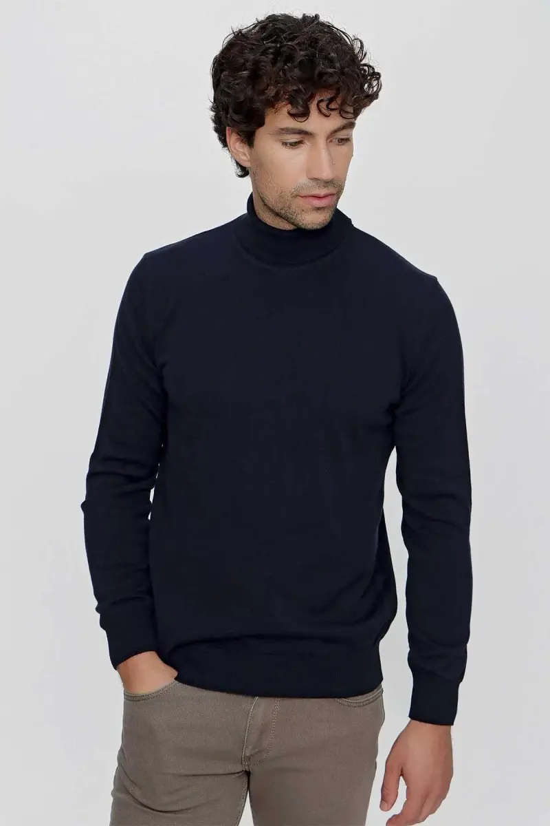 Lacivert Balıkçı Yaka Triko Kazak | Dinamik Fit, Rahat Kesim | Erkek Kazak