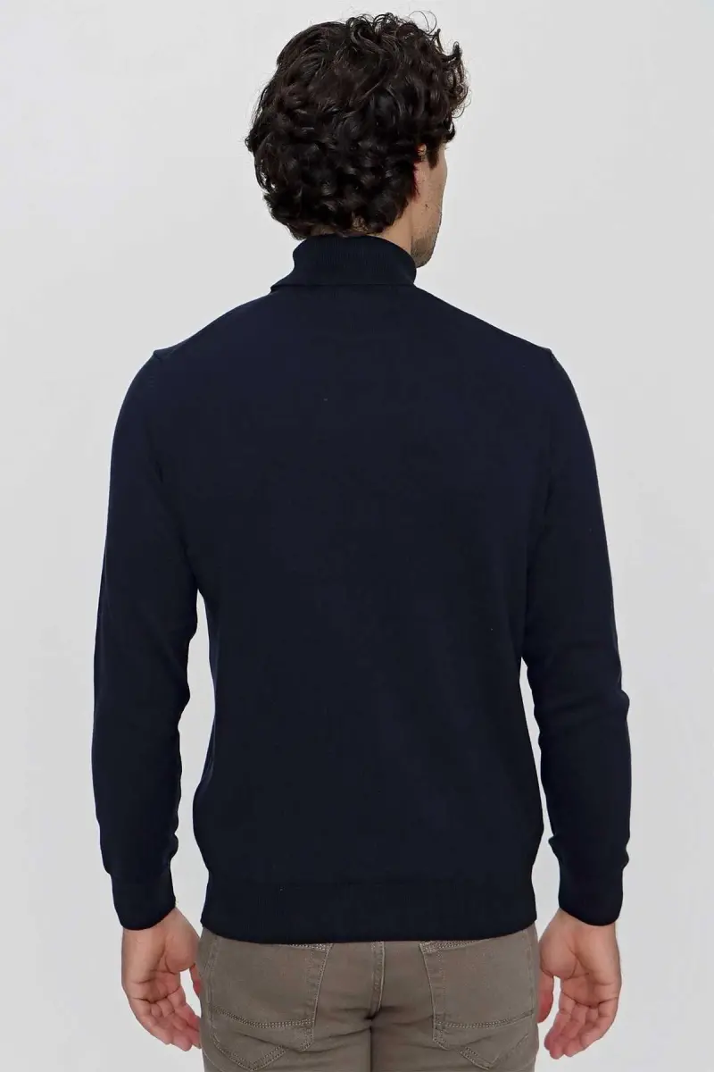 Lacivert kazak, balıkçı yaka, triko kazak, dinamik fit, rahat kesim, erkek kazak, viskon kazak, polyester kazak, naylon kazak, basic kazak