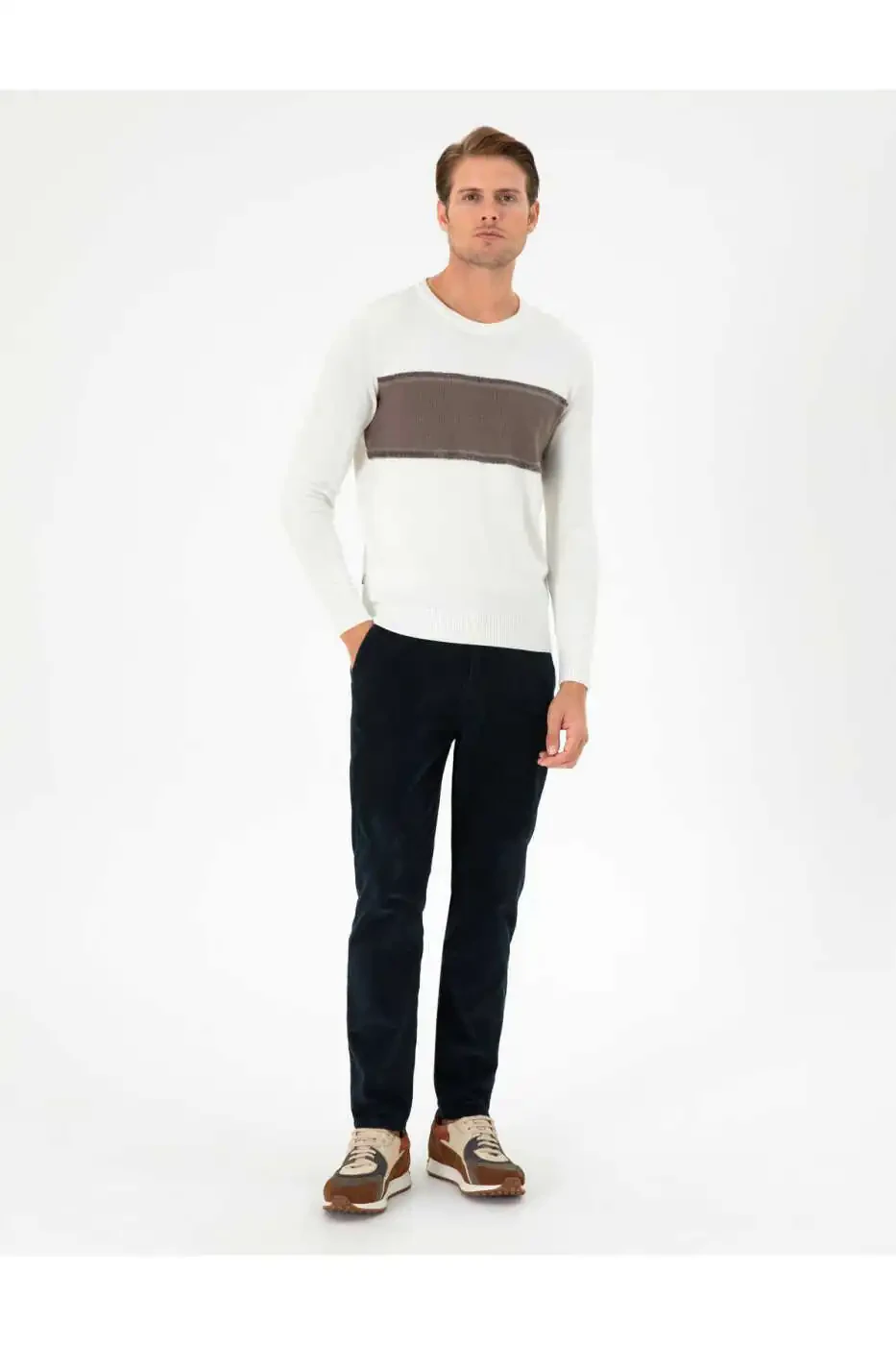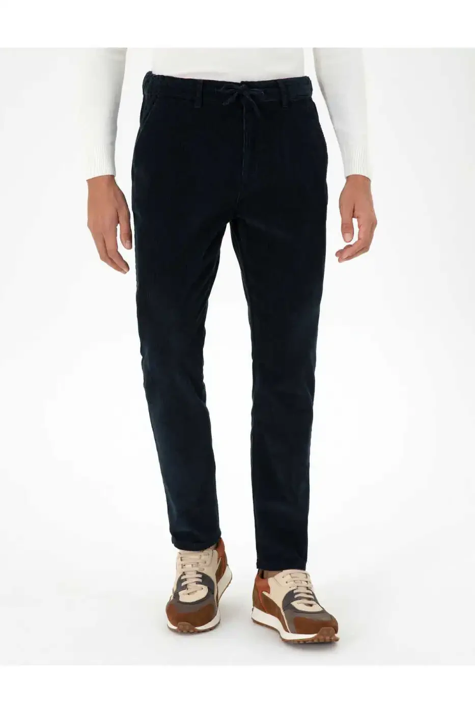 To'q ko'k rangli karot shaklidagi kanvas shimni futbolkalar, ko'ylaklar, bluzklar yoki sviterlar bilan birlashtirib, uslubli va qulay uslub yaratishingiz mumkin. Ular shuningdek, sport poyabzallari, sandallar yoki to'piqlar bilan mukammal tarzda uyg'unlashadi.