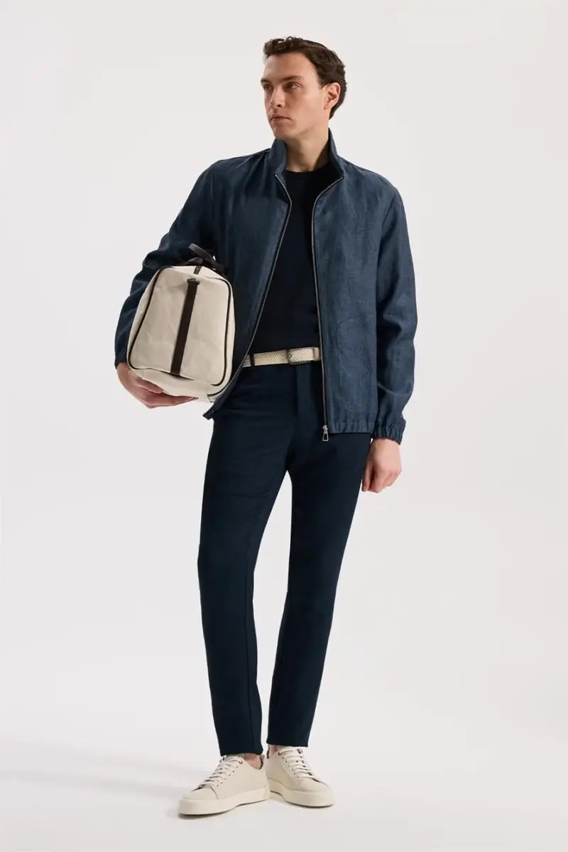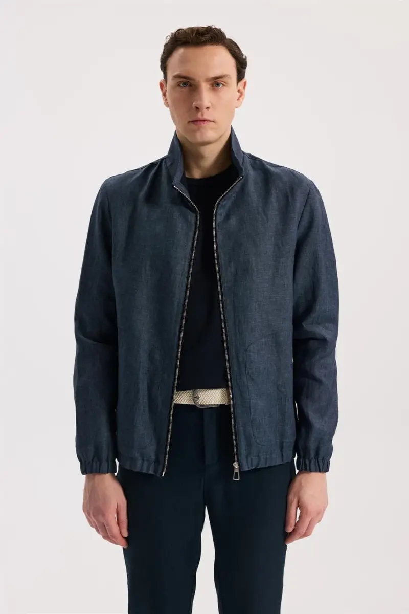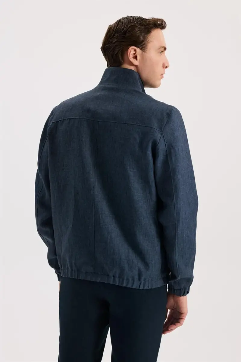 Lacivert Comfort Fit %100 Keten Mevsimlik Spor Mont