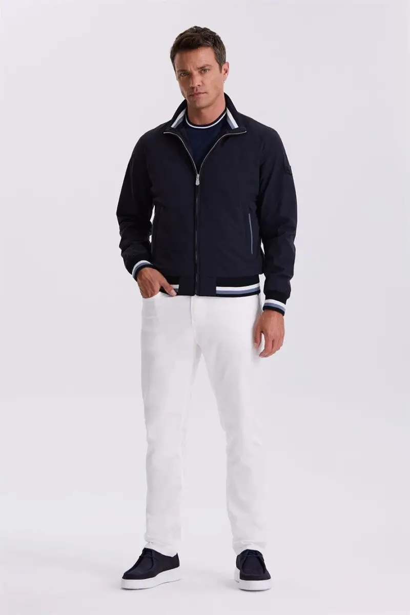 Lacivert Comfort Fit Dik Yaka Rahat Kesim Mevsimlik Mont
