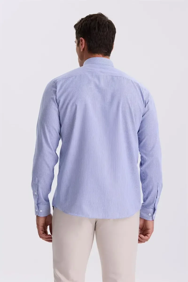 Оцените стиль и комфорт в течение всего дня с темно-синей рубашкой Comfort Fit, не требующей глажки, в полоску, из 100% хлопка Non Iron. Разработана специально для мужчин, которые хотят всегда выглядеть безупречно, не беспокоясь о глажке, в напряженном деловом графике или в особых случаях. Эта рубашка позволяет вашей коже дышать благодаря 100% хлопковой ткани и обеспечивает комфорт в течение всего дня. Крой Comfort fit обеспечивает свободу движений, не стесняя тело, поэтому вы можете свободно двигаться в течение дня. Полосатый узор придает рубашке современный и динамичный вид, позволяя создавать различные комбинации. Вы можете сочетать ее с костюмом для классического образа или с джинсами для более спортивного стиля. Благодаря функции Non Iron вам не придется возиться со складками после стирки. Просто повесьте рубашку после стирки. Эта функция особенно удобна для тех, кто путешествует или ведет активный образ жизни. Темно-синий цвет – вневременной вариант, подходящий для любого случая. Он дополнит ваш стиль как в деловой жизни, так и в повседневной носке. Ткань рубашки изготовлена из высококачественного хлопка, поэтому она долговечна и выдерживает многократные стирки. Размеры изделия в размере M указаны в таблице размеров. Рекомендуется учитывать размеры в таблице при определении своего размера. Вы можете лучше представить, как рубашка будет сидеть на вас, учитывая параметры манекена (Рост: 189 см, Грудь: 100 см, Талия: 92 см). Темно-синяя рубашка Comfort Fit, не требующая глажки, в полоску, из 100% хлопка Non Iron станет незаменимой вещью в вашем гардеробе. Эта рубашка, сочетающая в себе комфорт и стиль, является базовой одеждой, которая должна быть у каждого мужчины. Эта рубашка, которую вы можете подарить себе или своим близким, — качественный и полезный вариант.